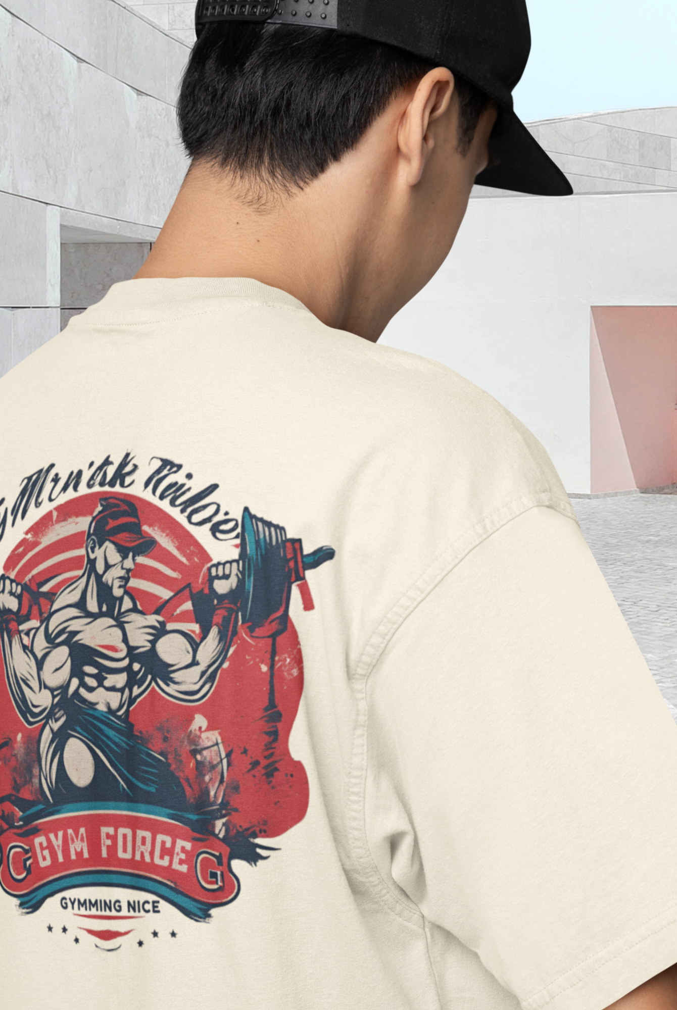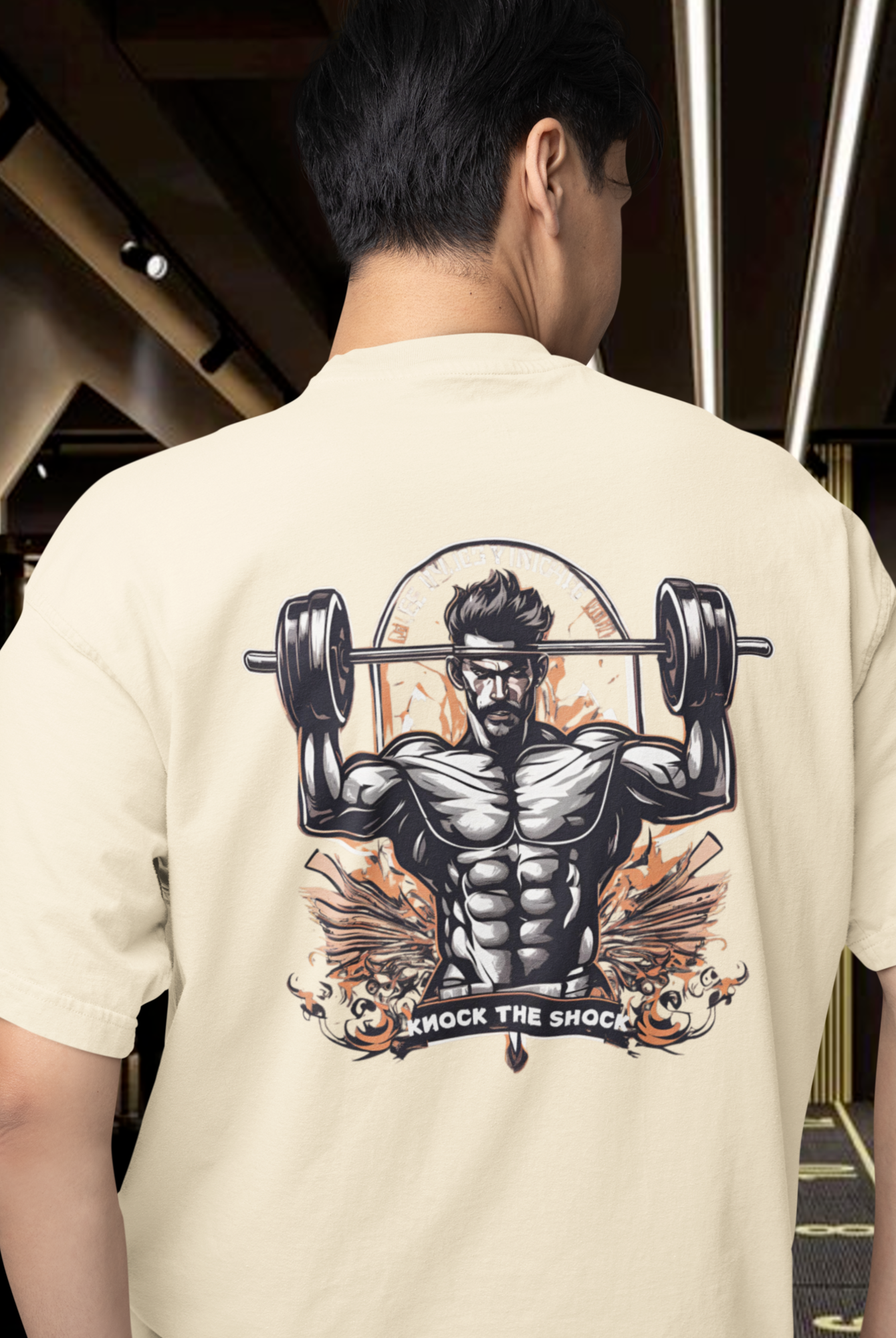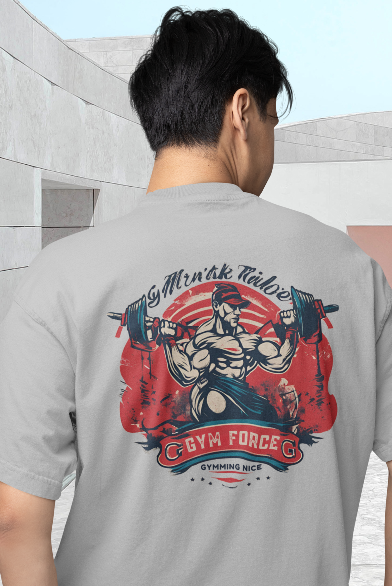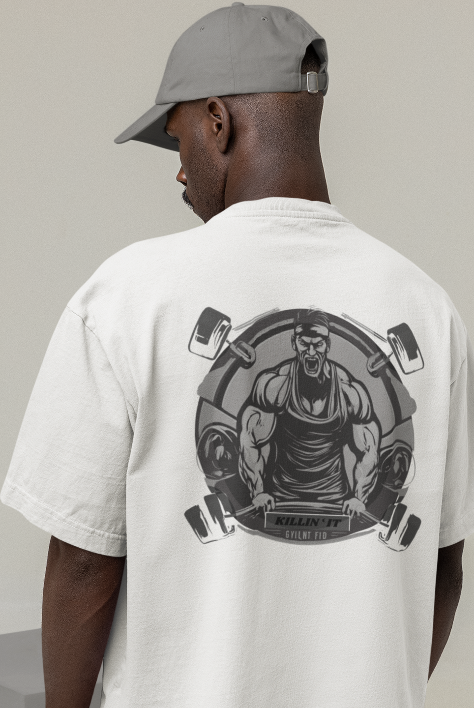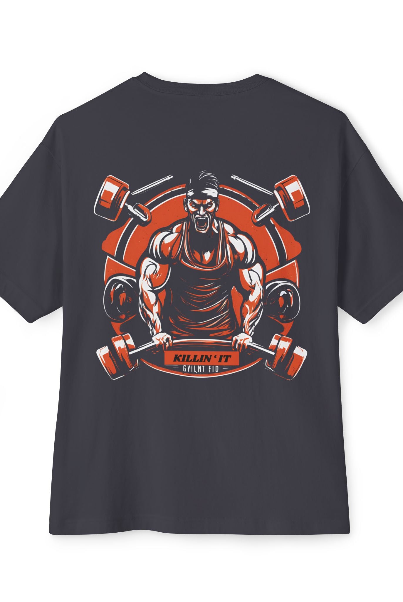 Men gym wear back print round neck oversized t-shirt