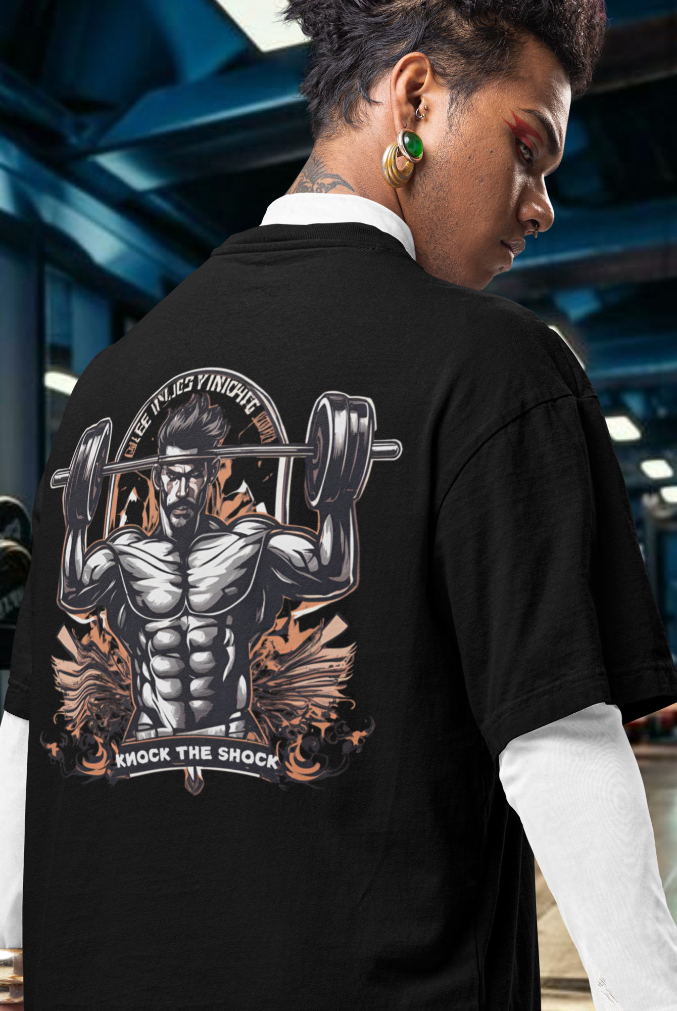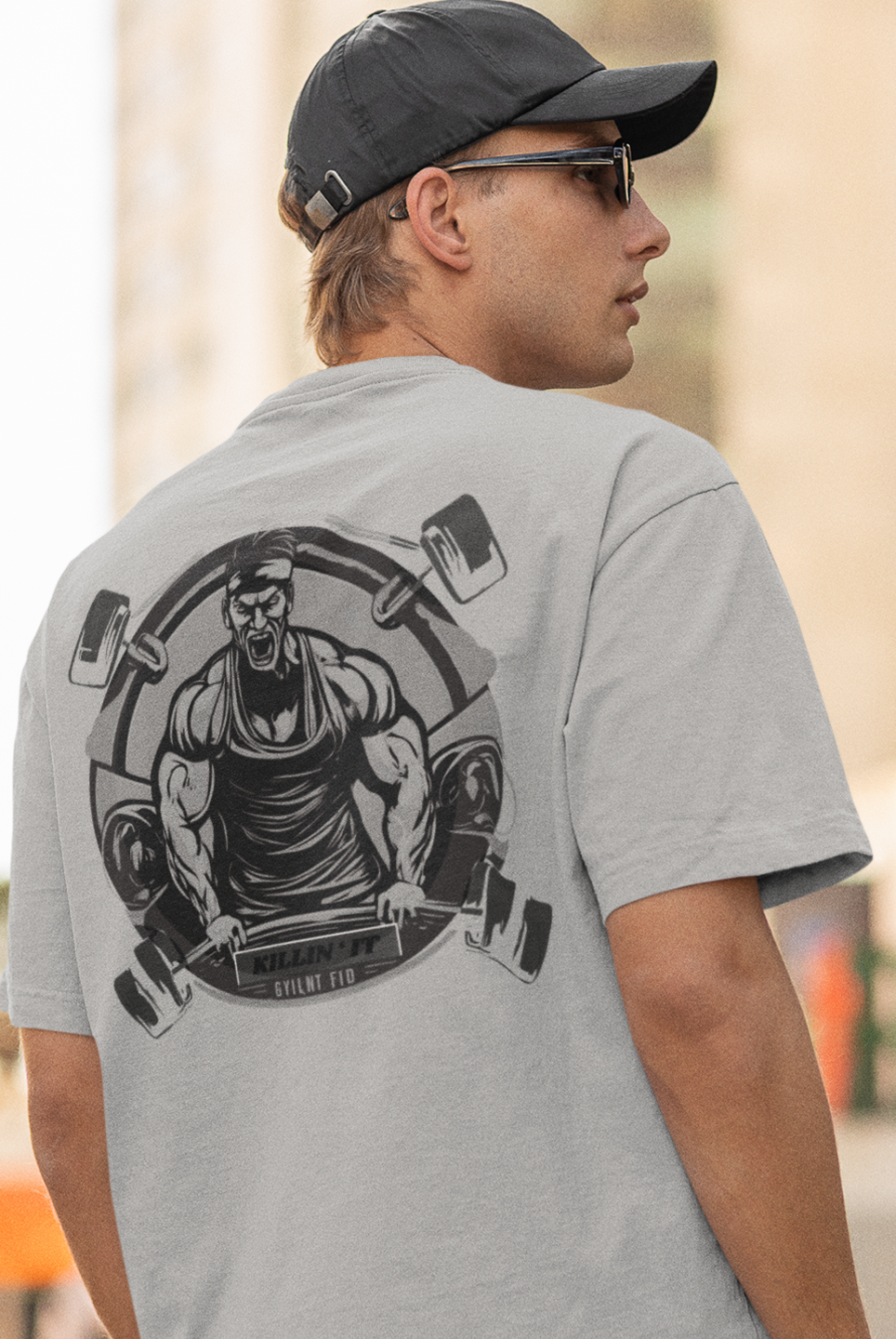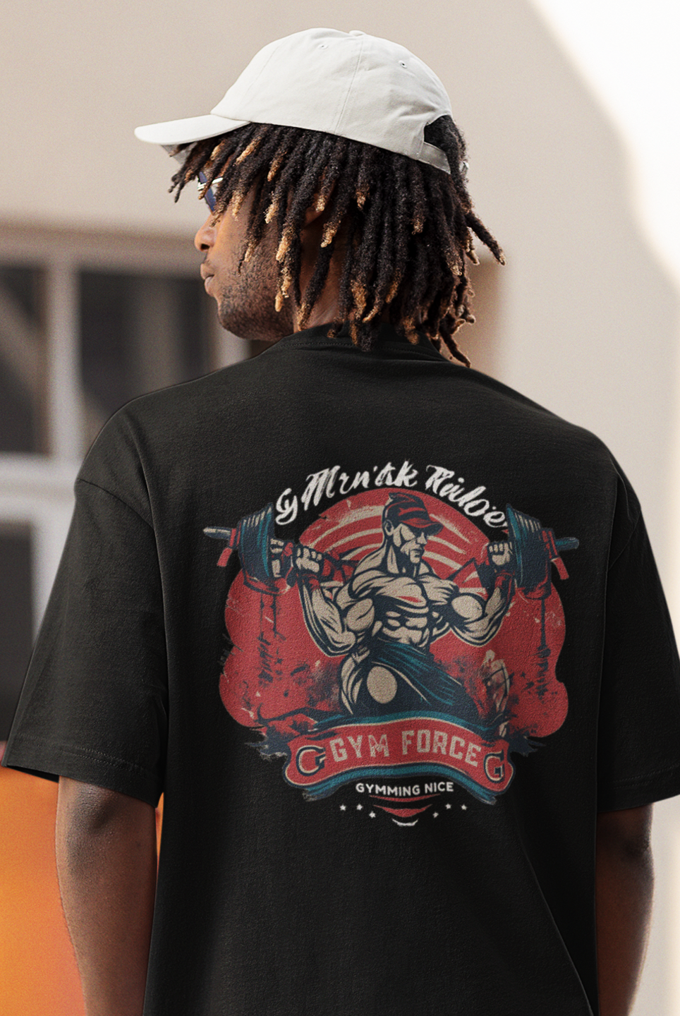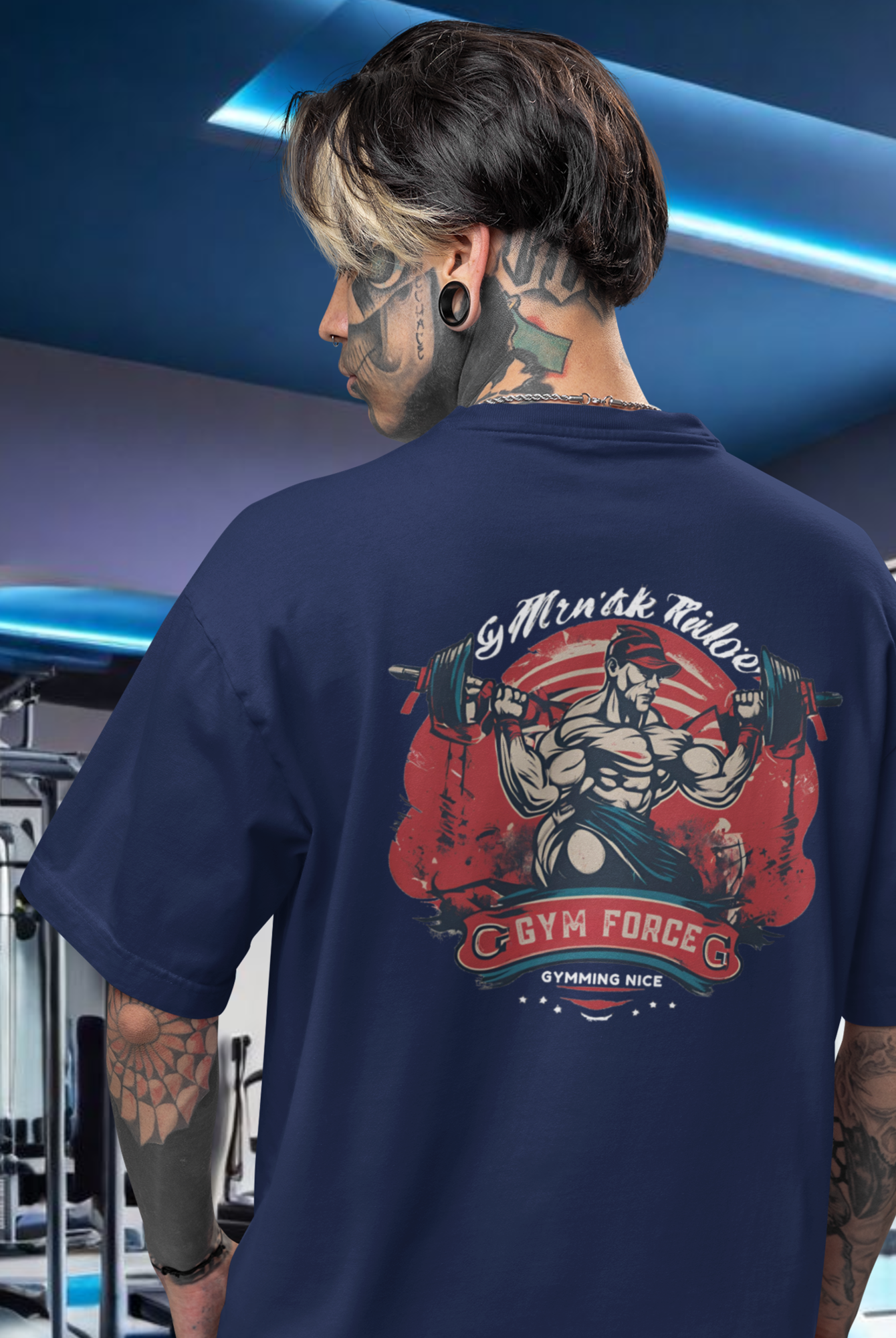 Men gym wear back print round neck oversized t-shirt