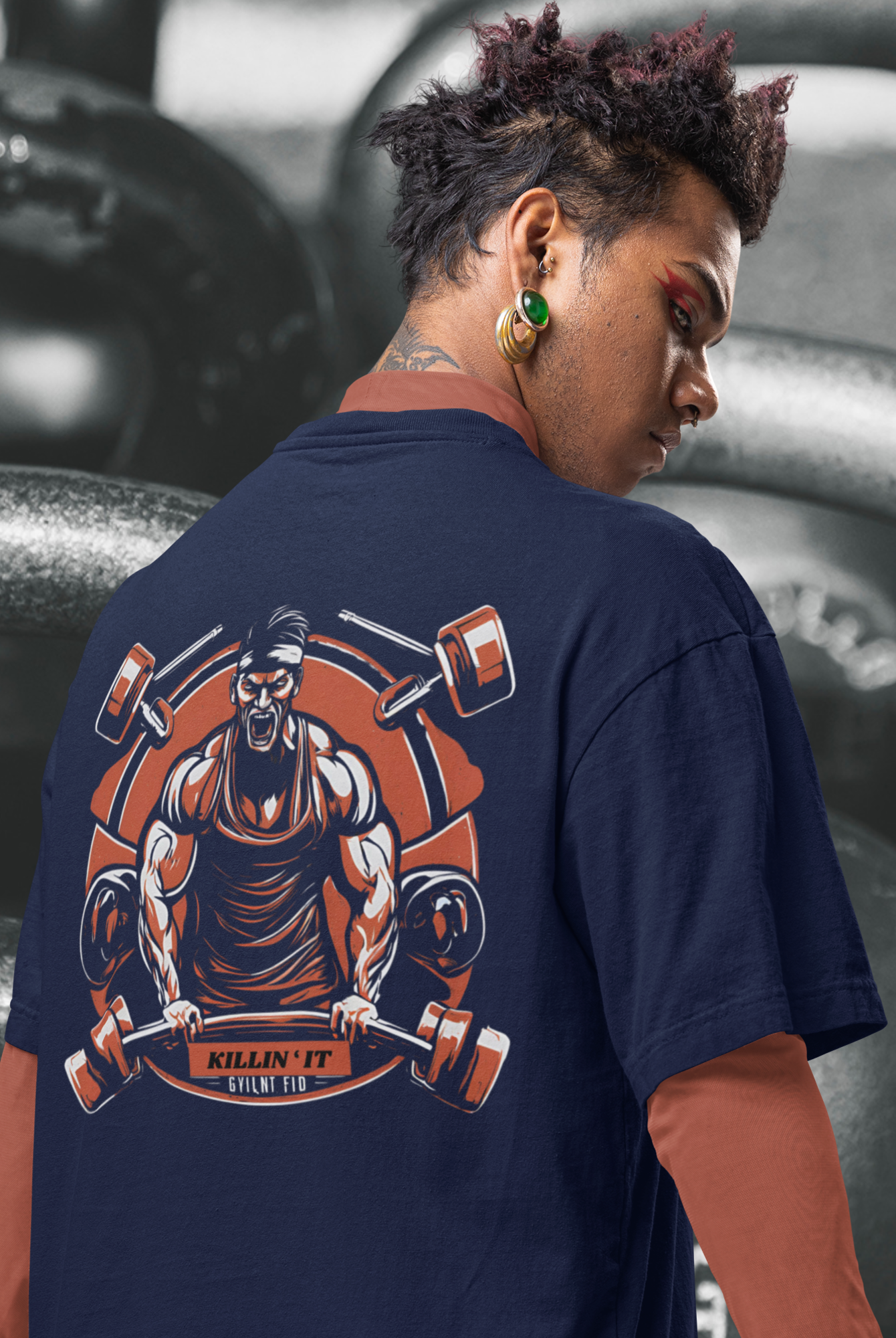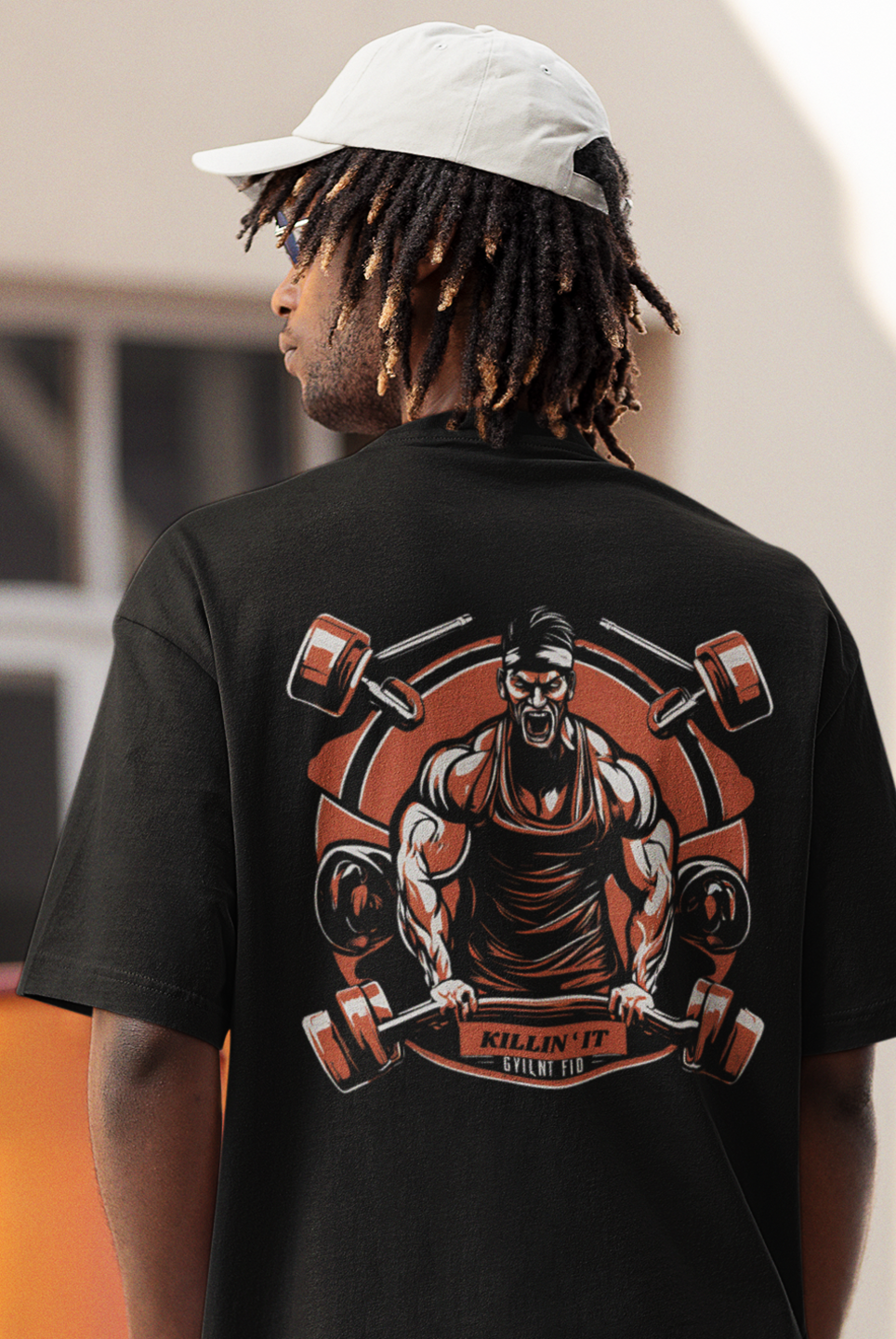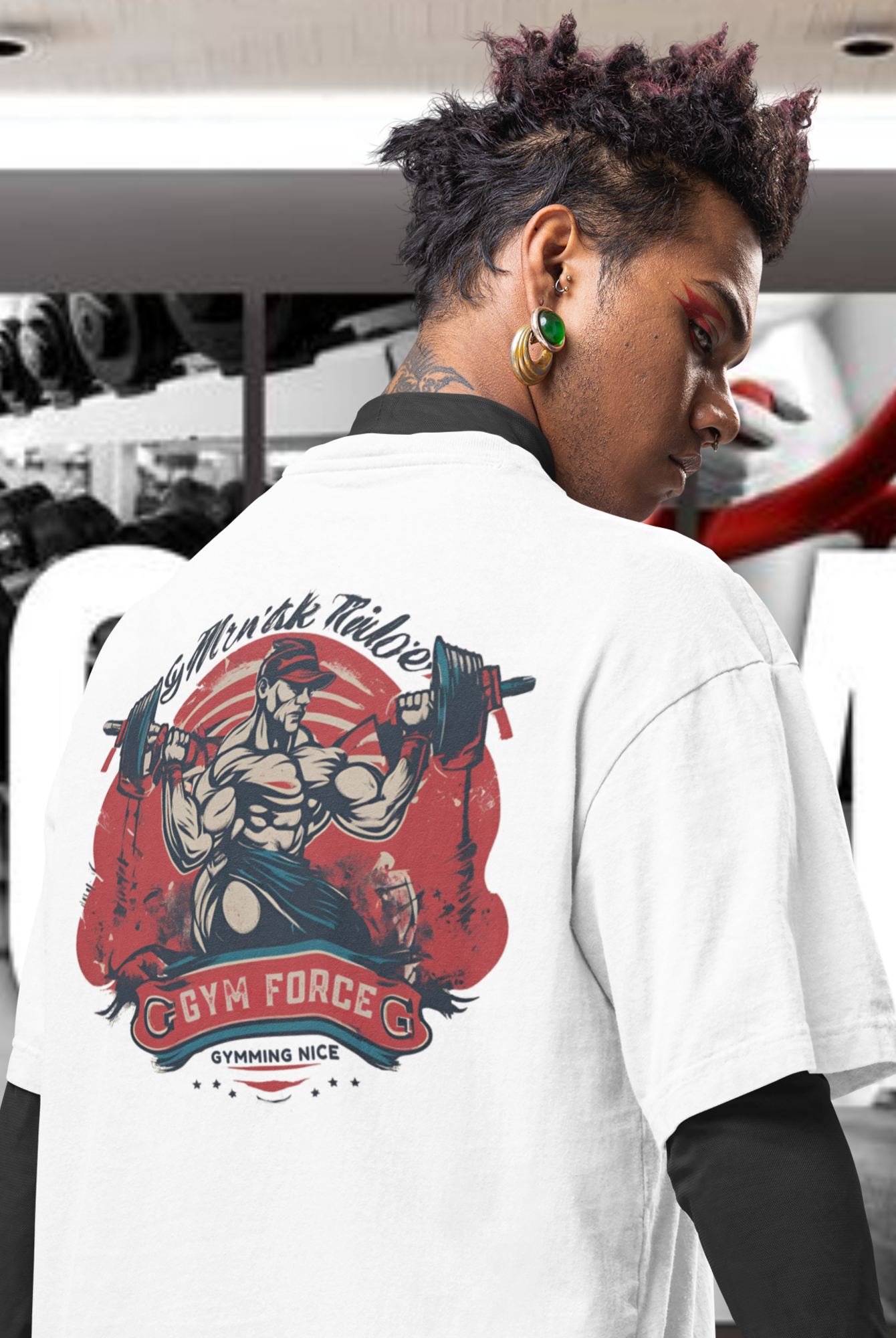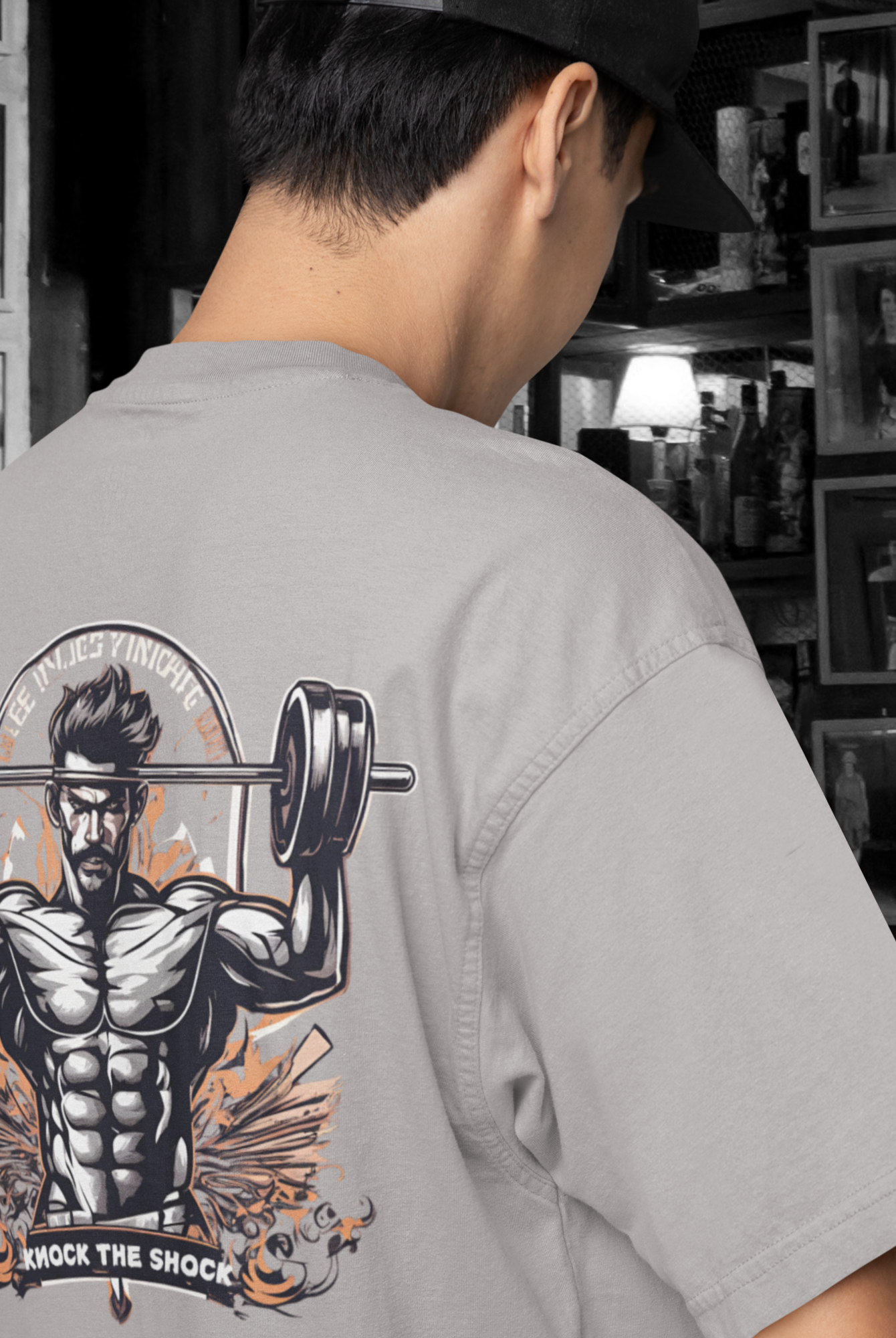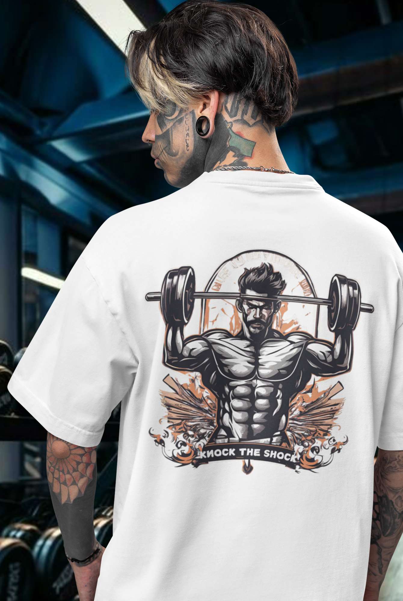 Men gym wear back print round neck oversized t-shirt