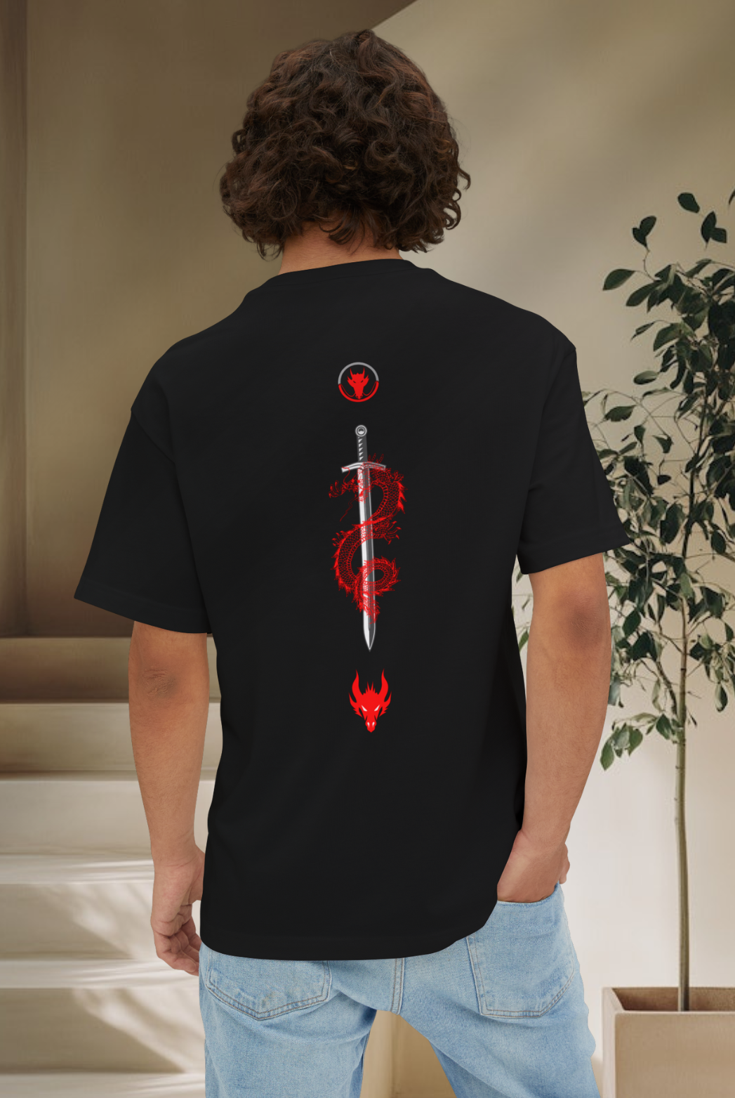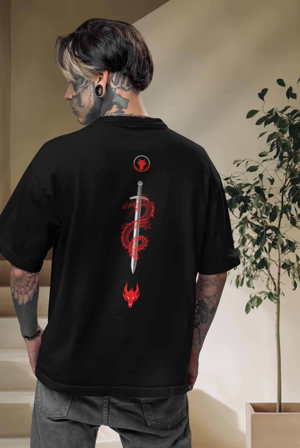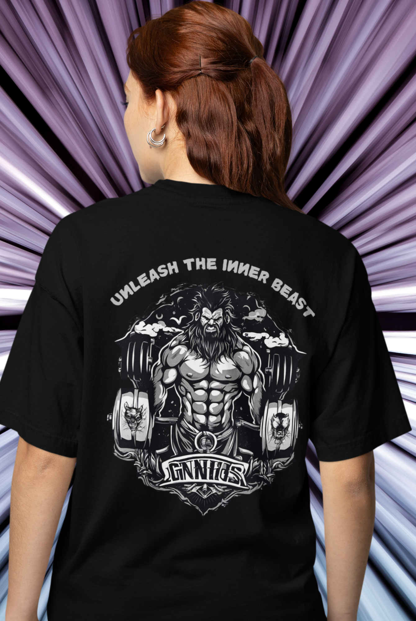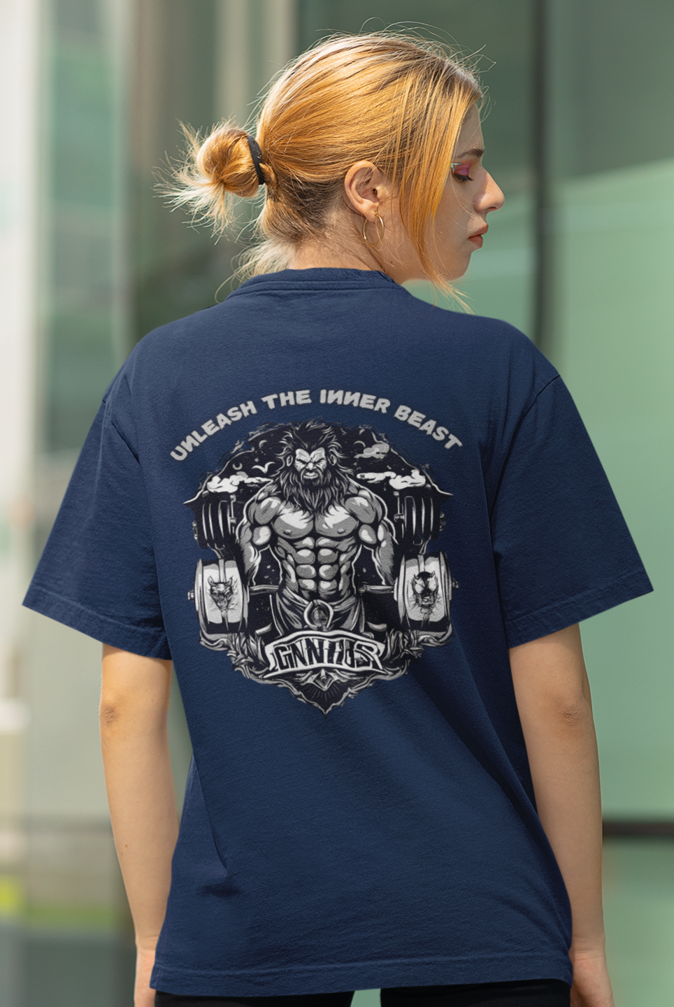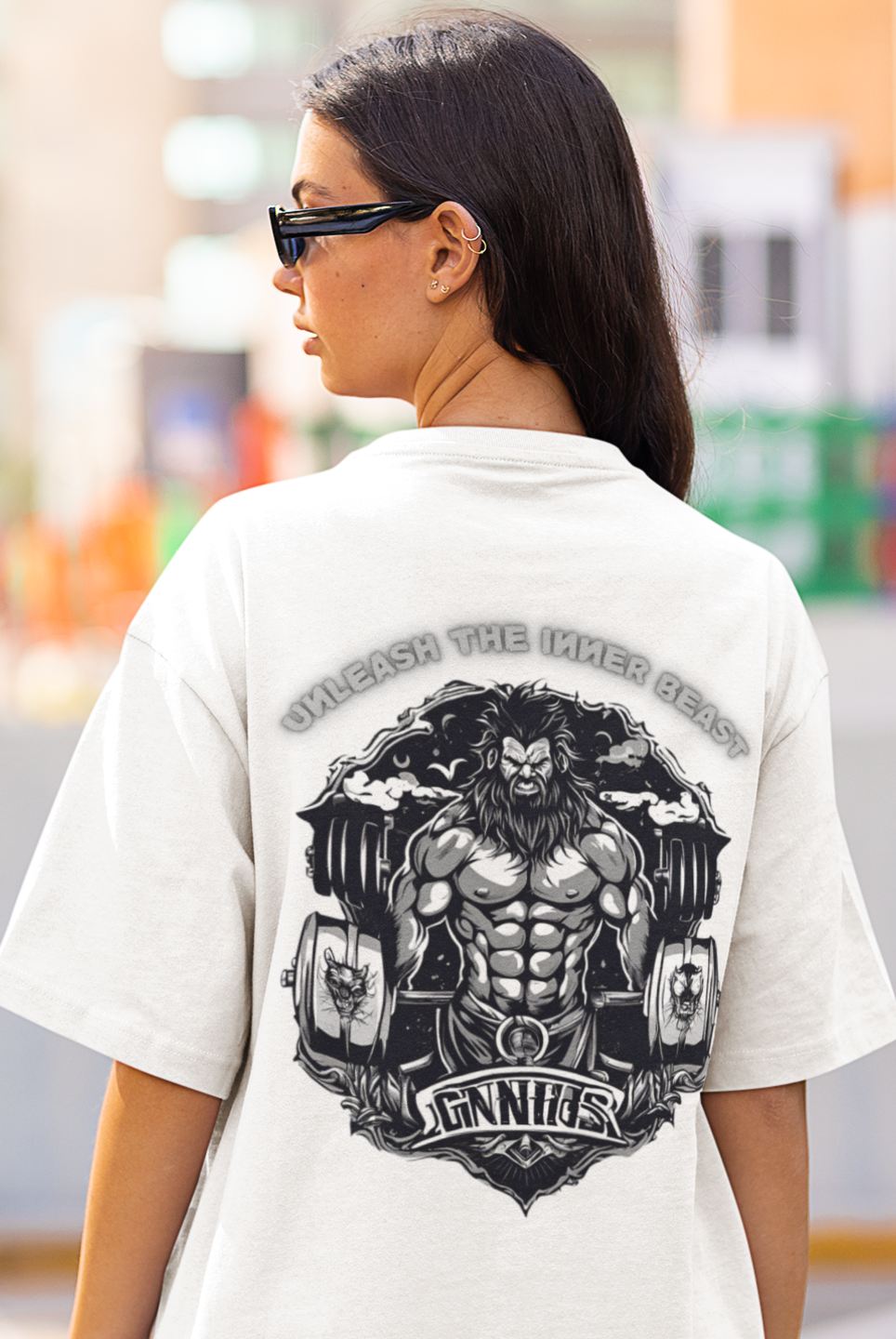 Men gym wear back print round neck oversized t-shirt