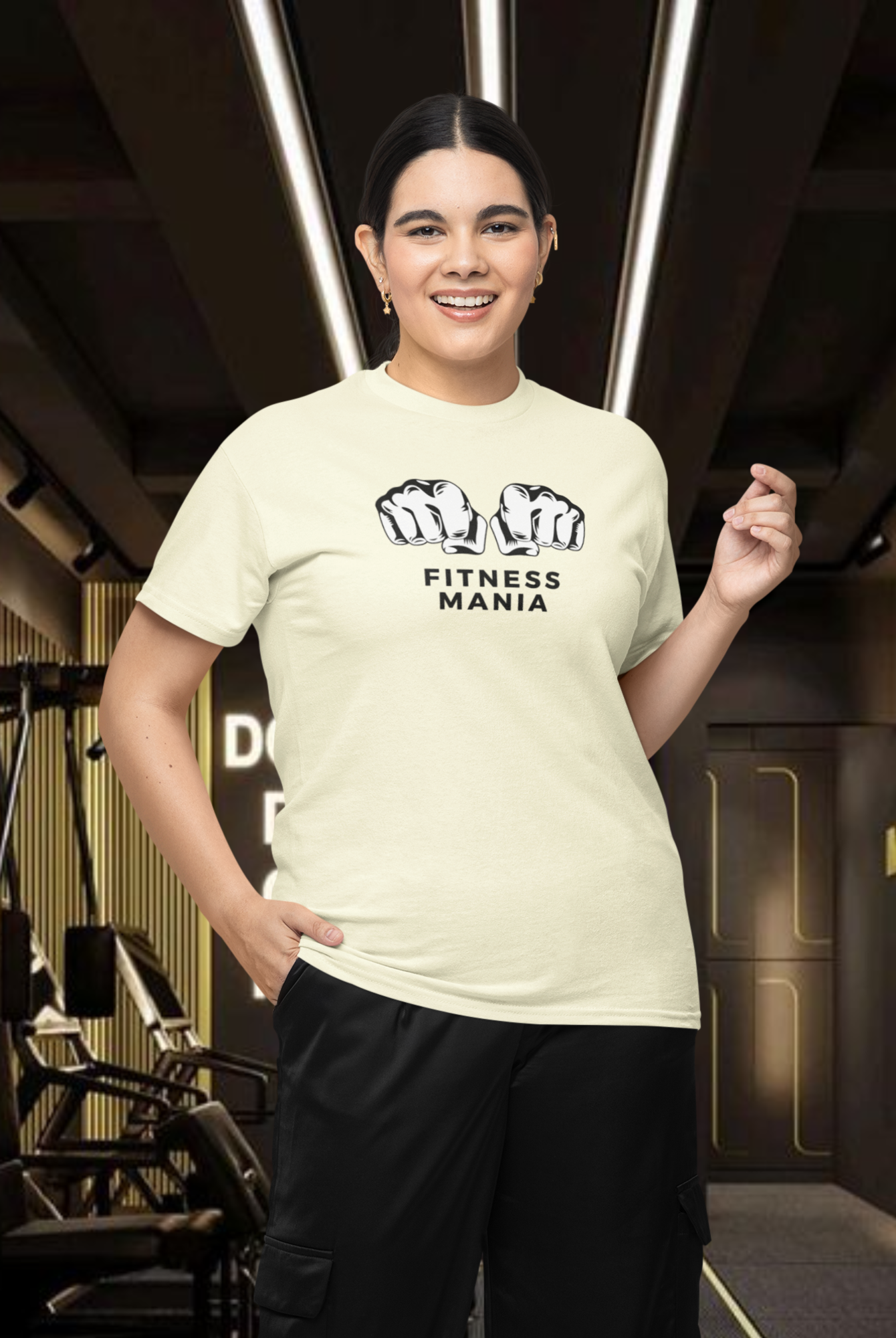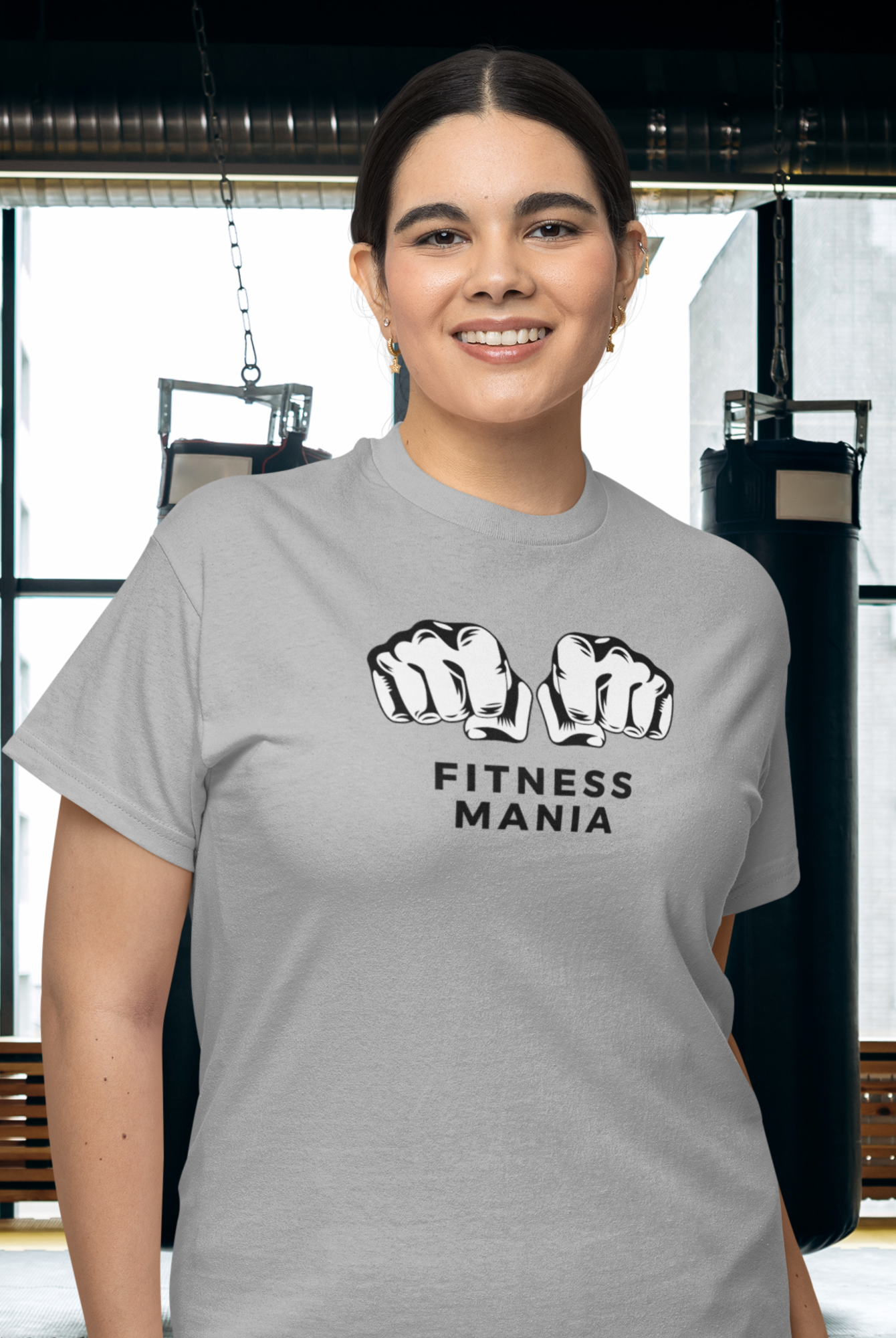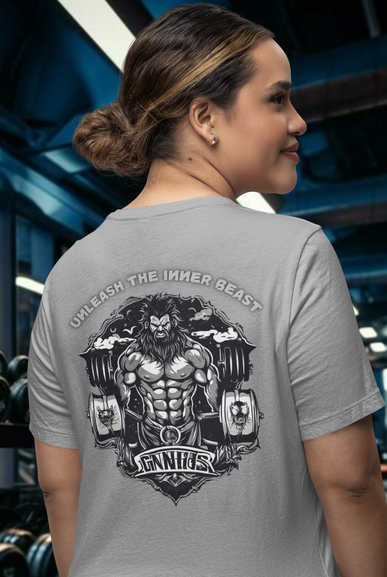 Women gym wear back print round neck oversized t-shirt
