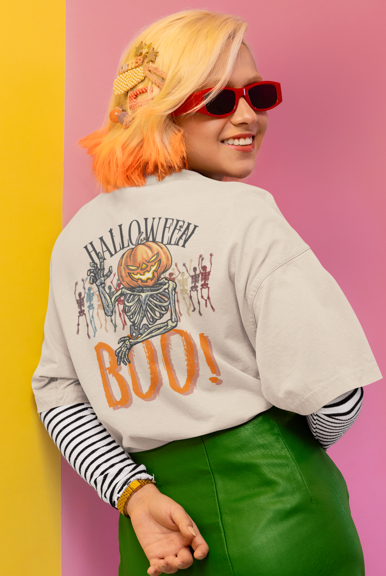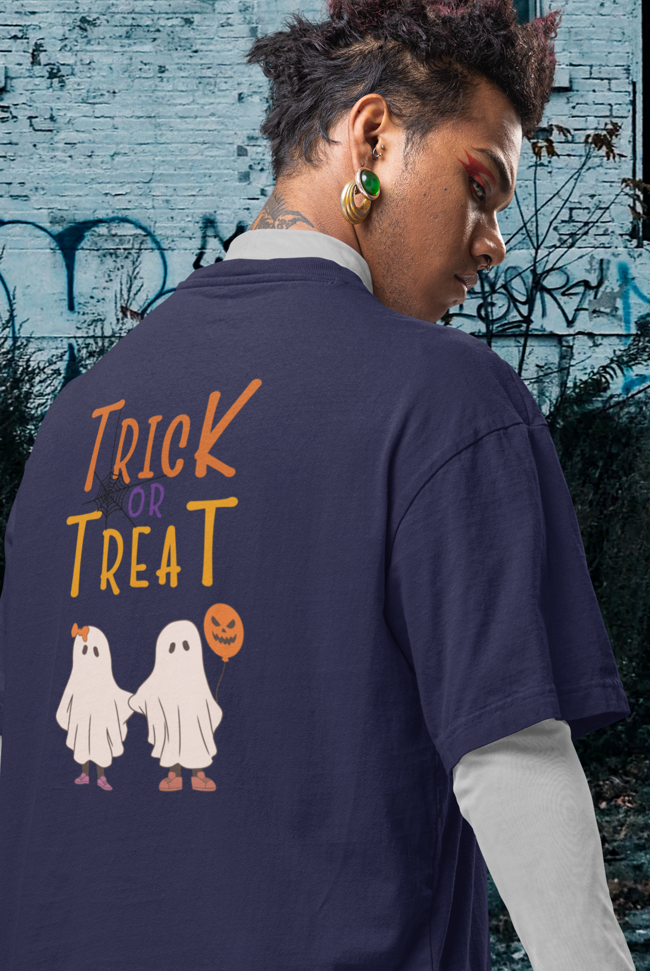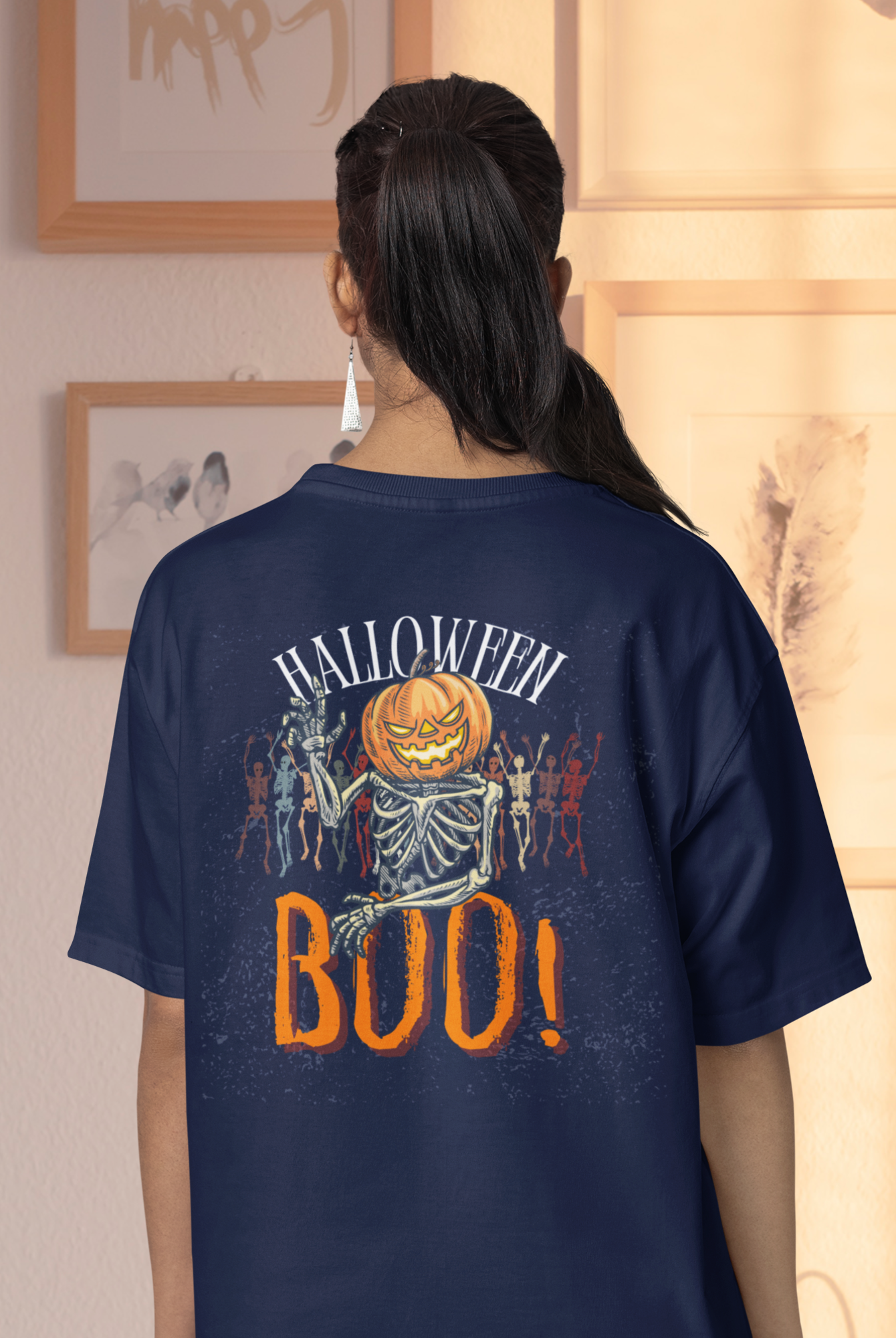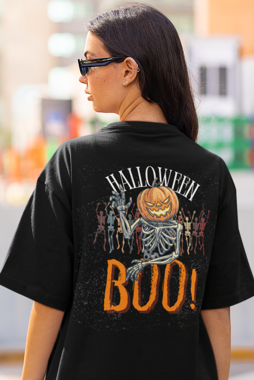 Halloween special back printed oversized round neck T-shirt for Women