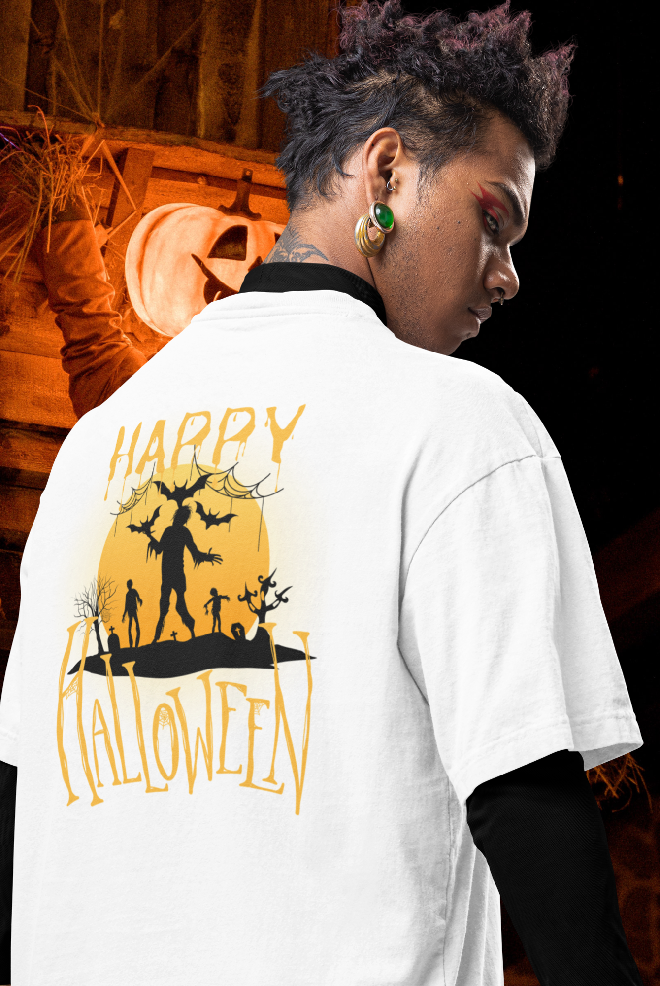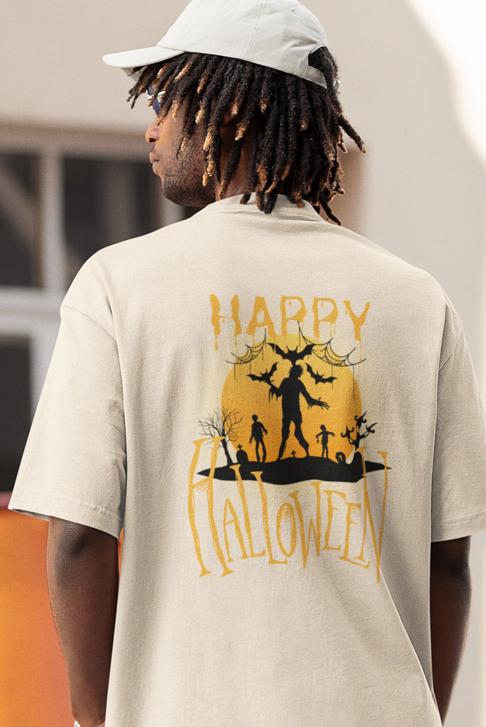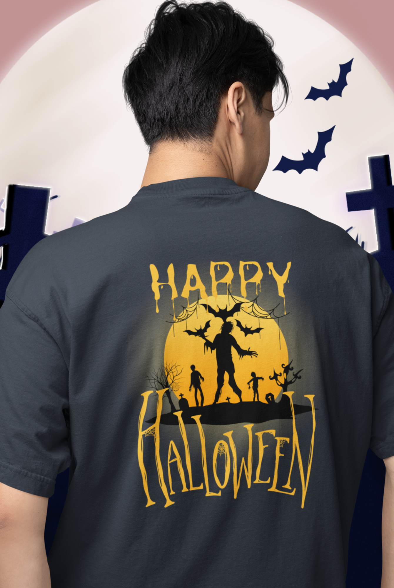 Halloween special back printed oversized round neck t shirt for Men