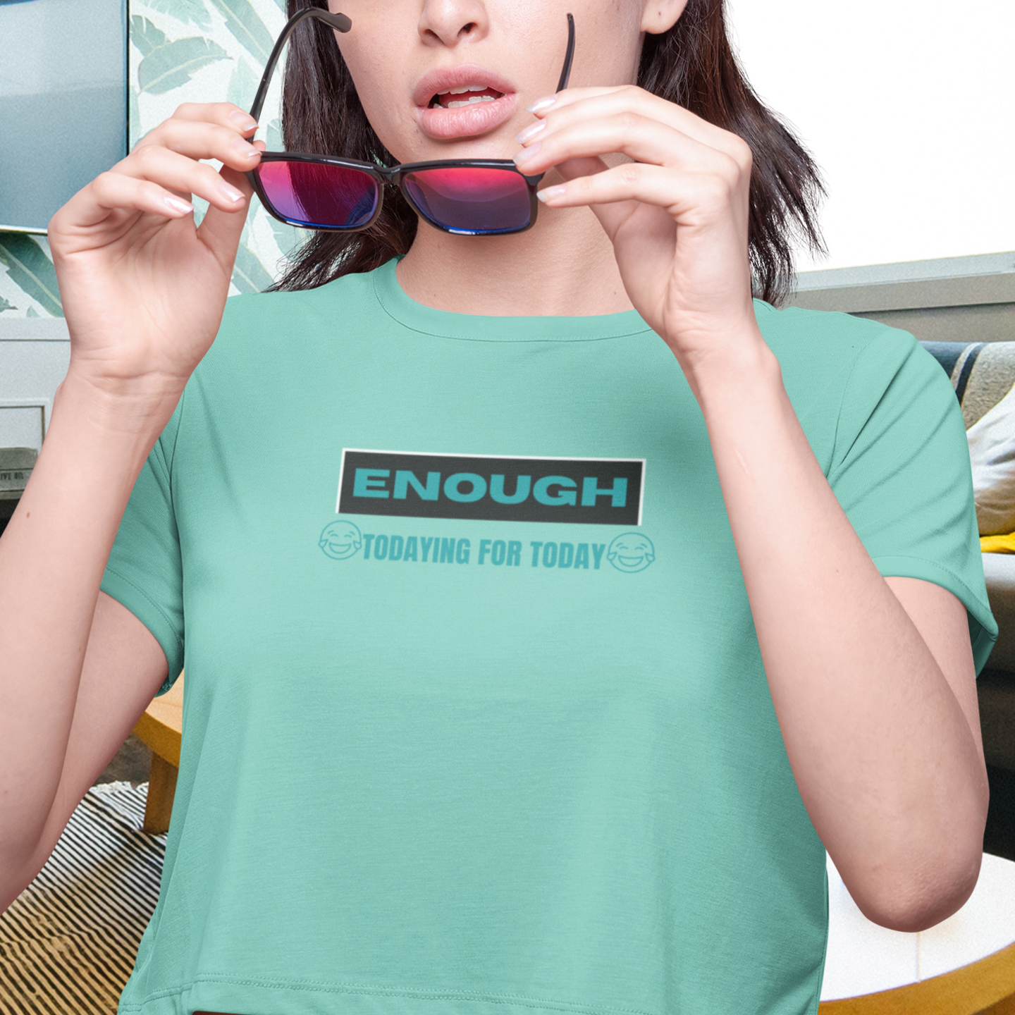 Women humor text printed boxy fit Cropped Tee