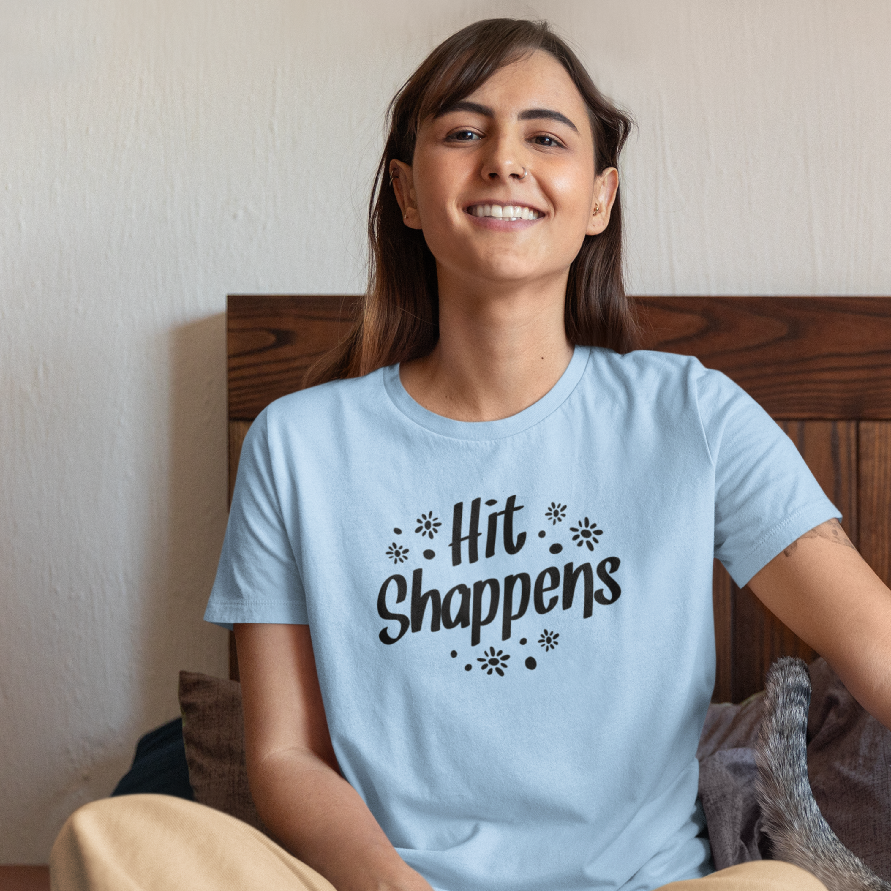 Women humor text printed round neck half sleeve T-shirt