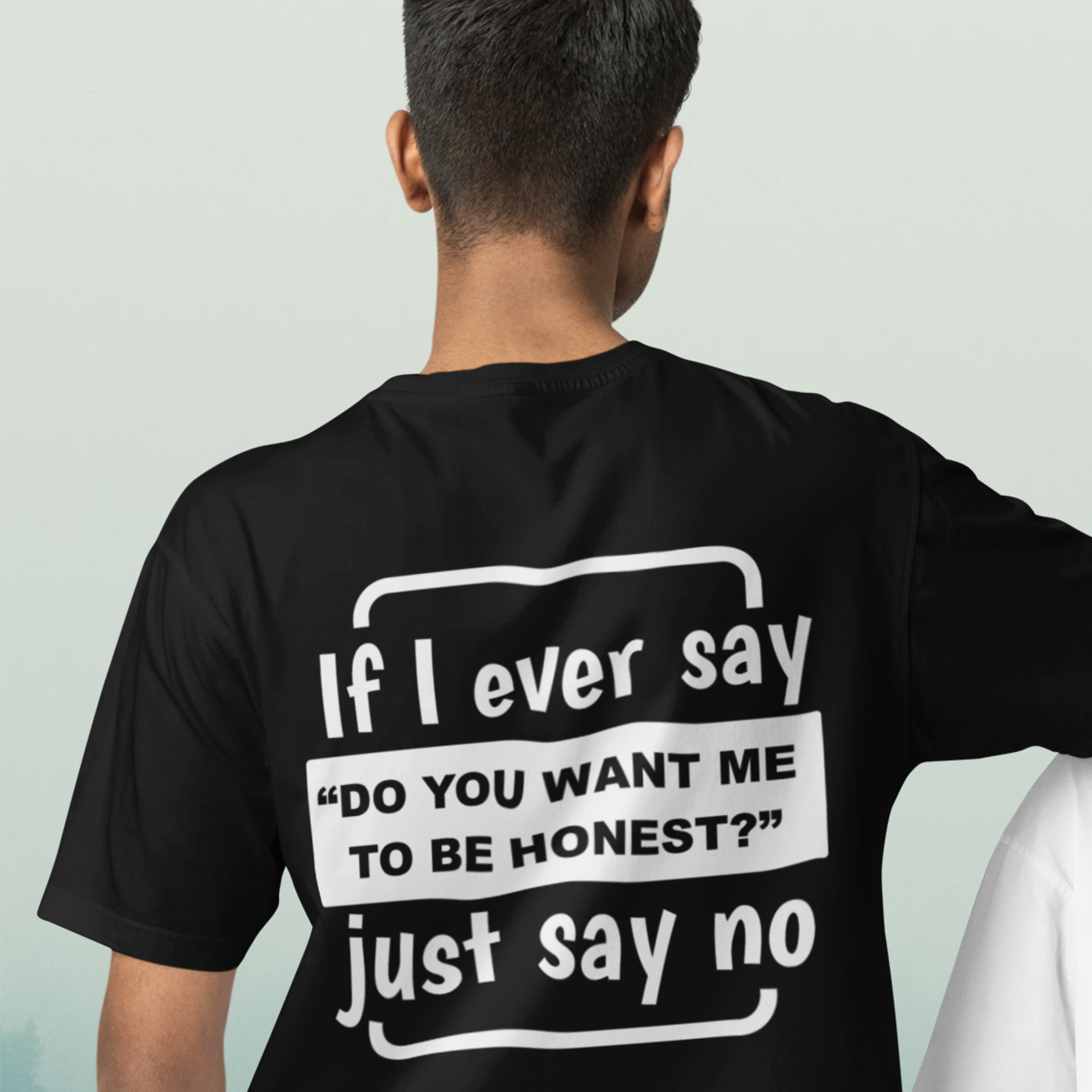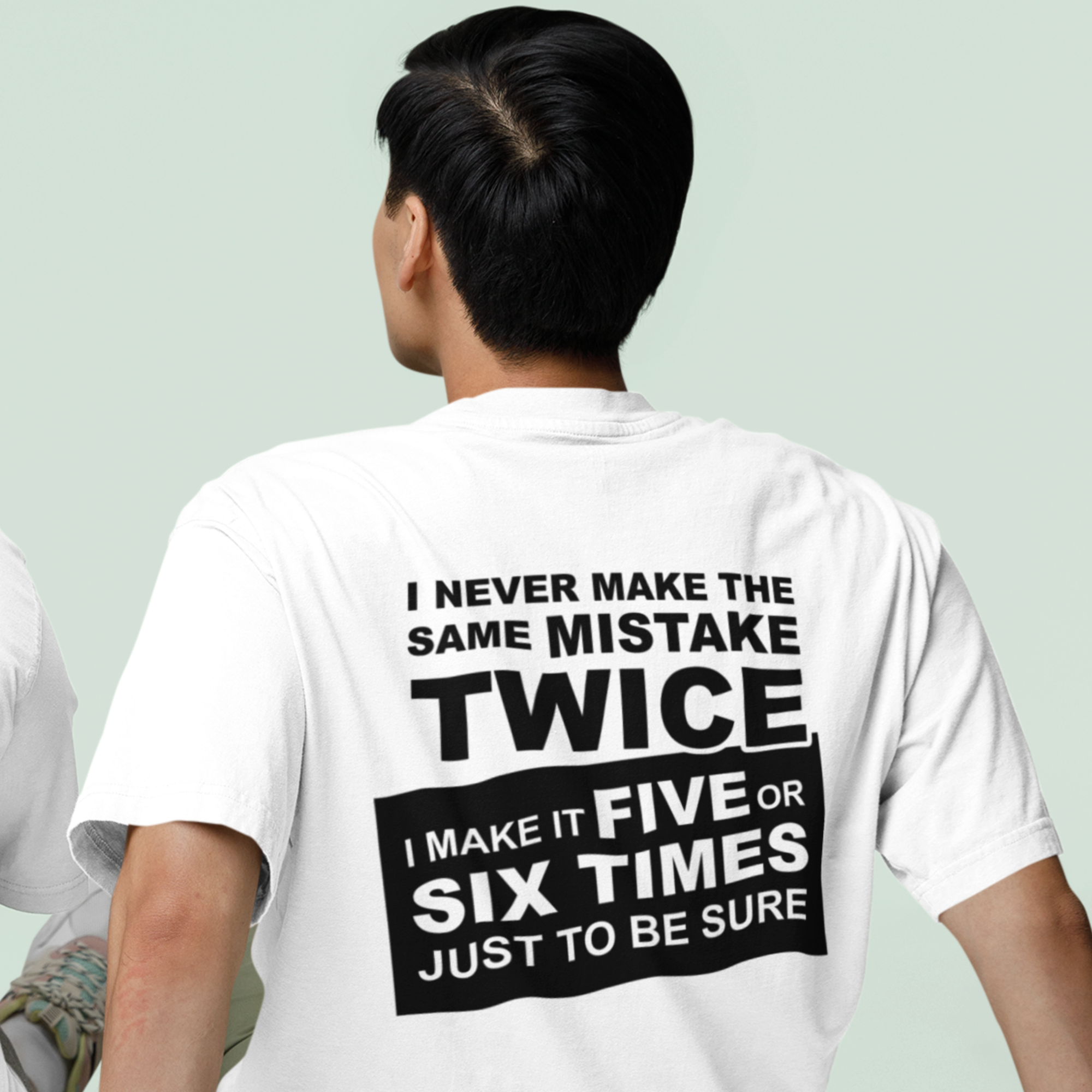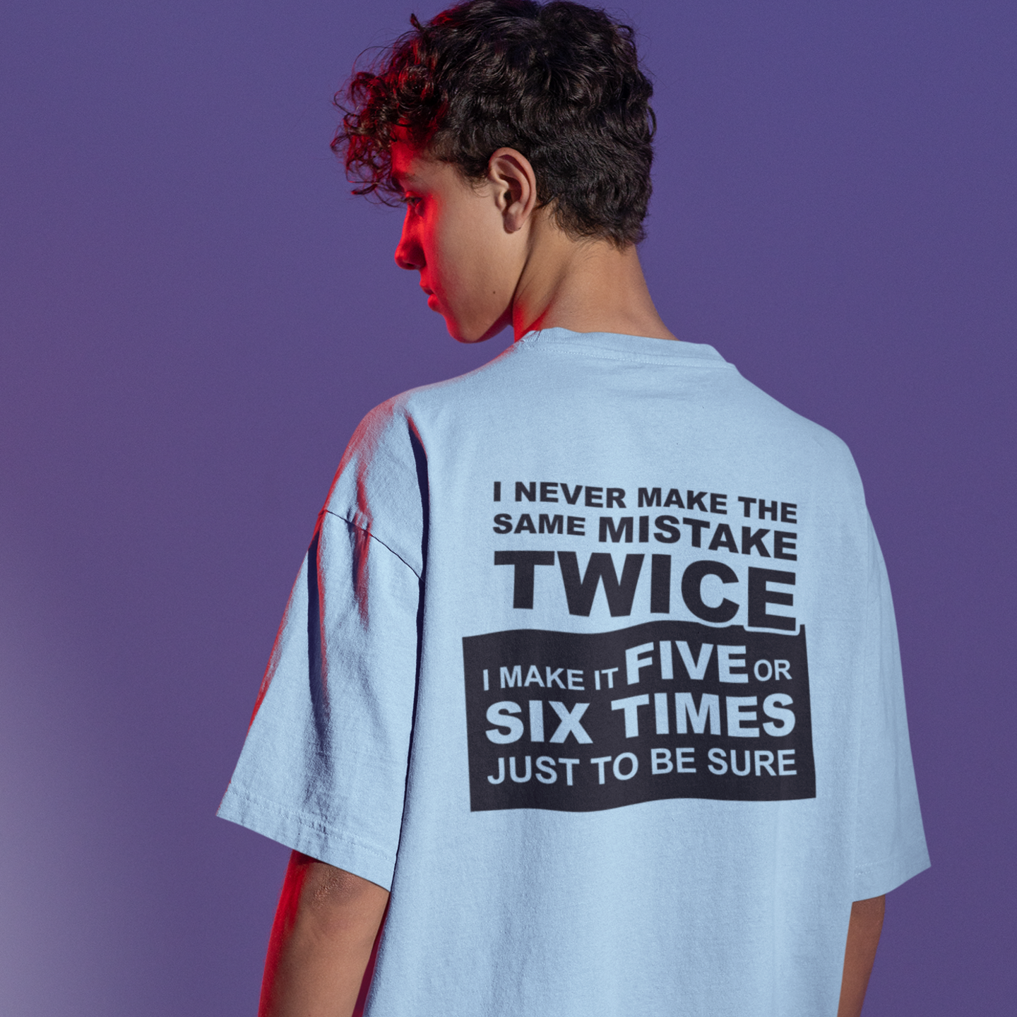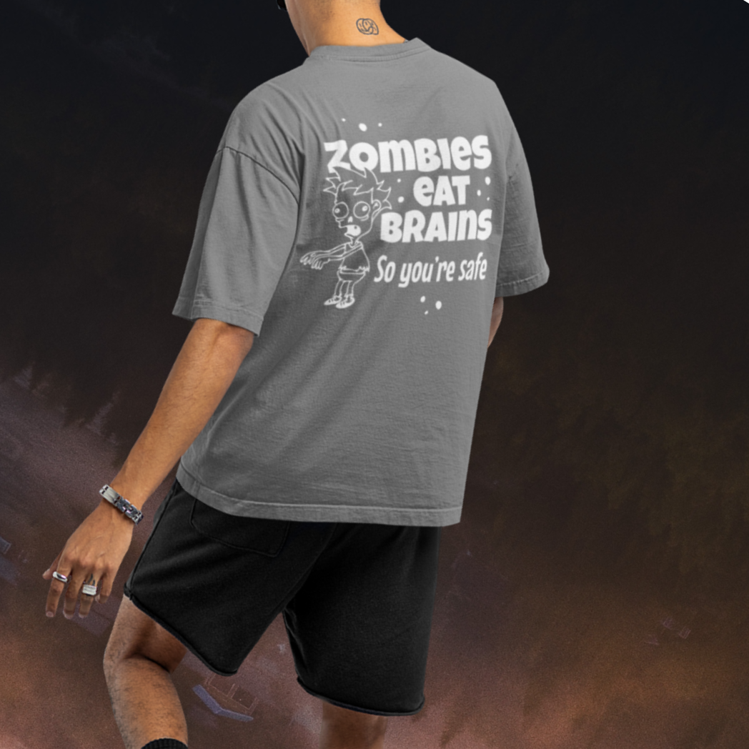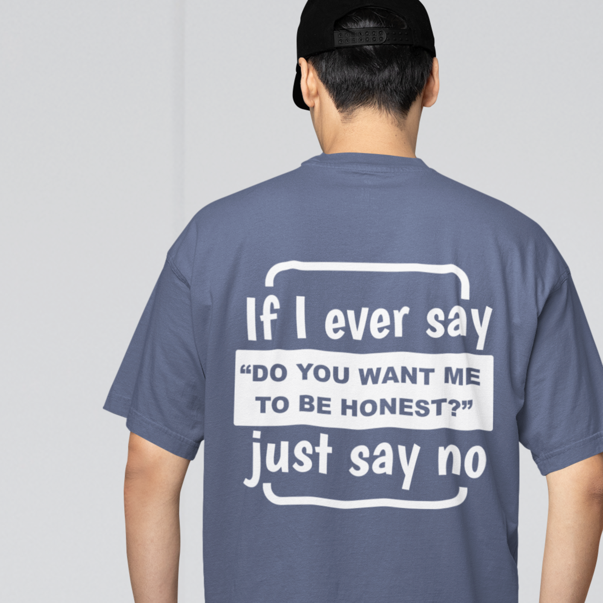 Humor text back printed oversized round neck t shirt for men