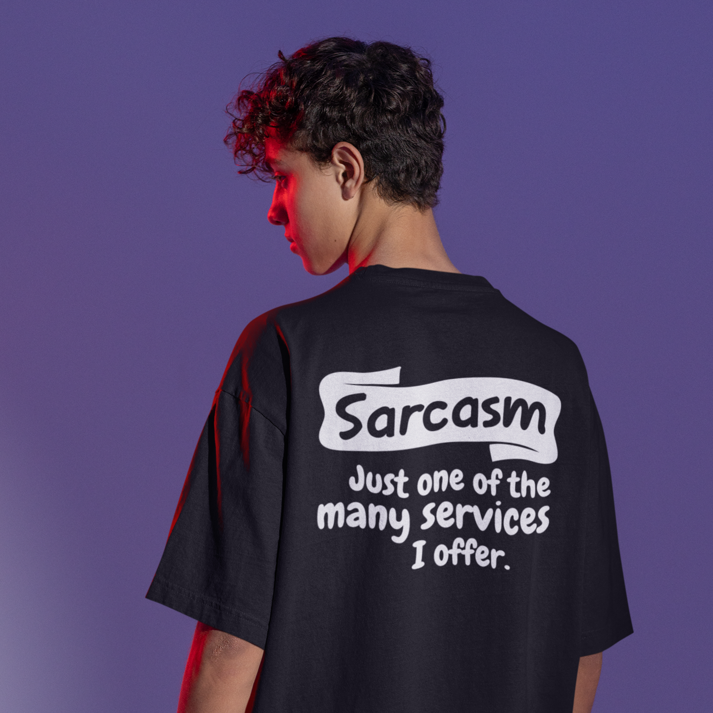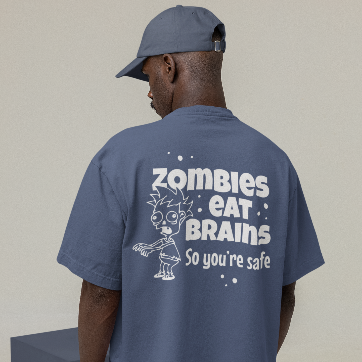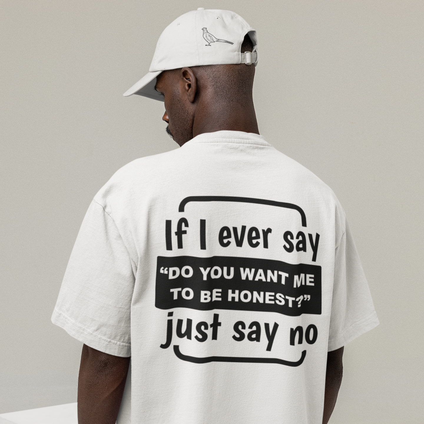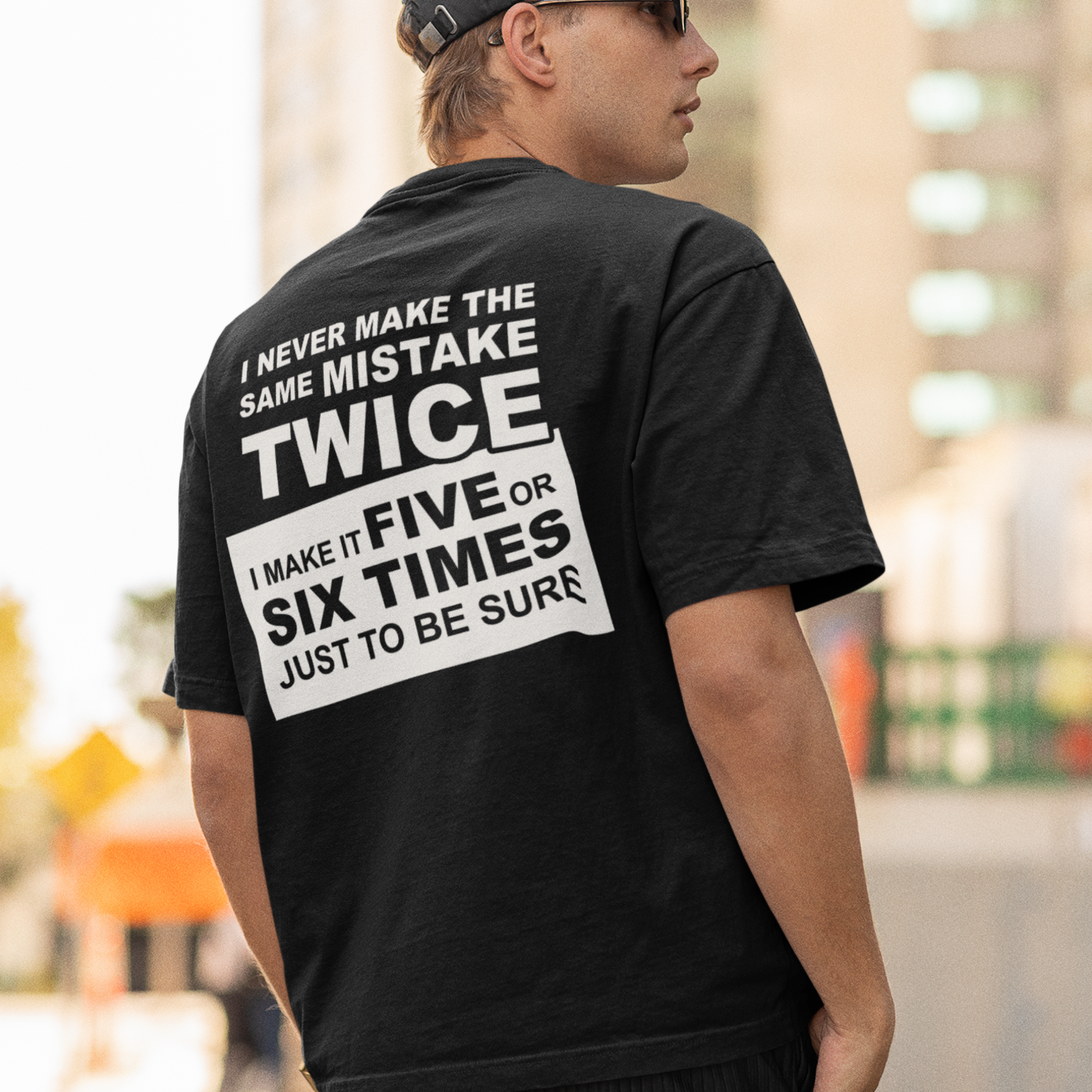 Humor text back printed oversized round neck t shirt for men