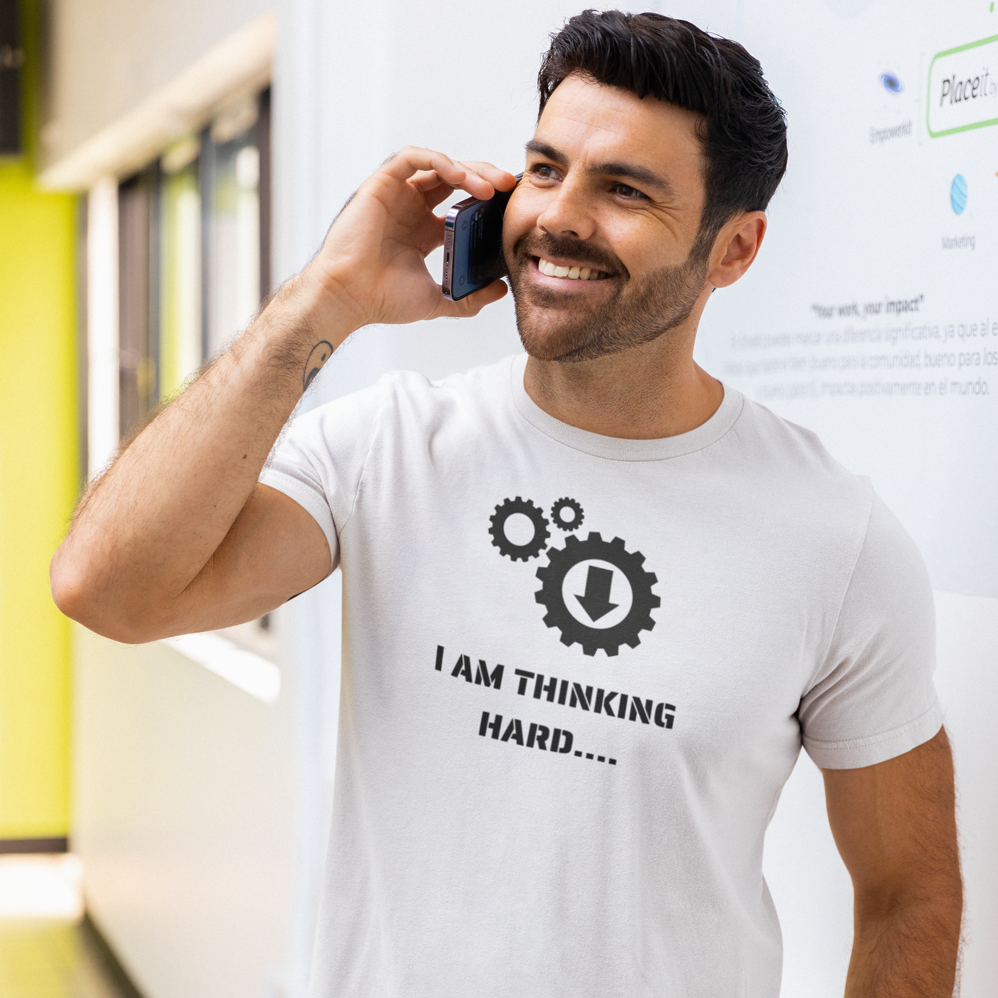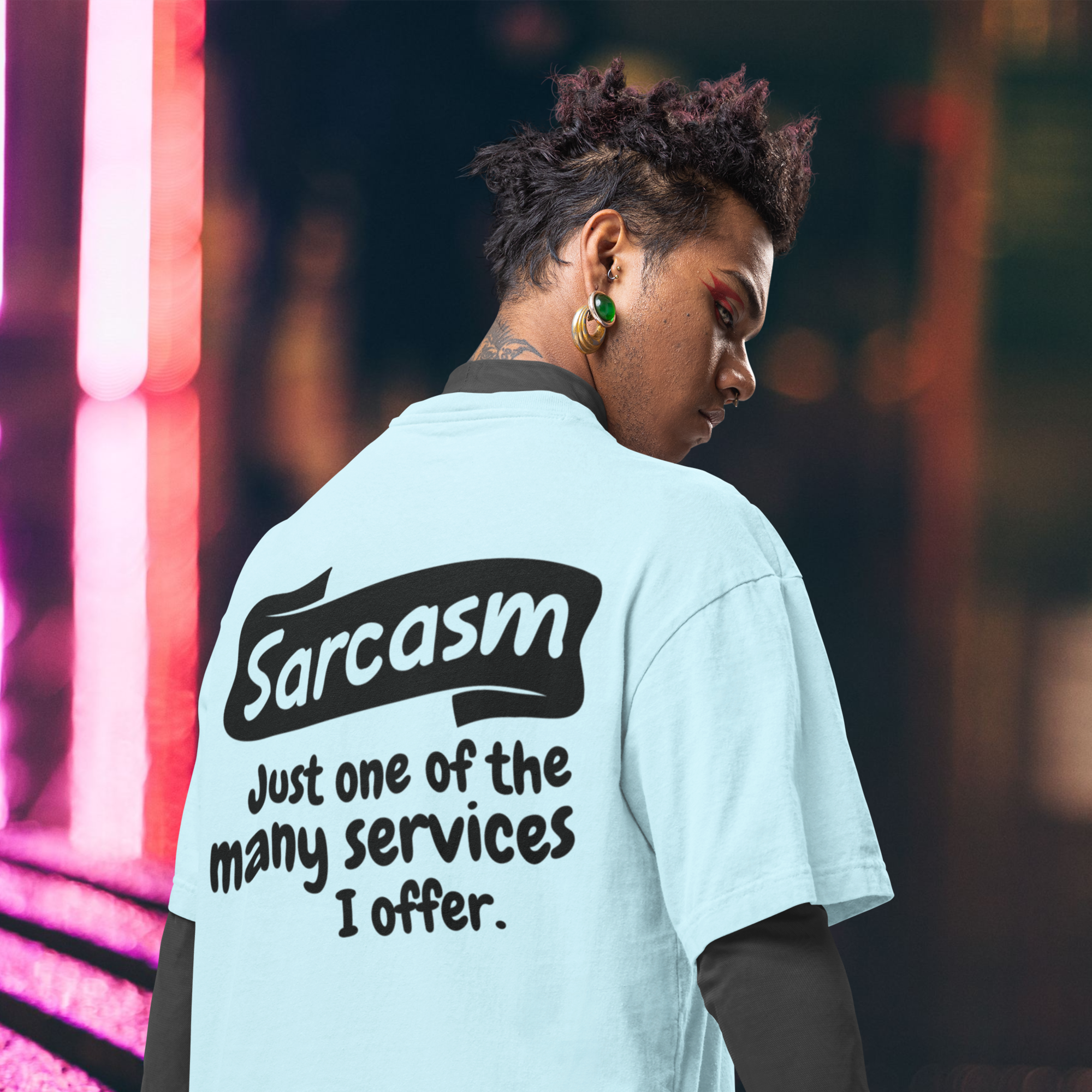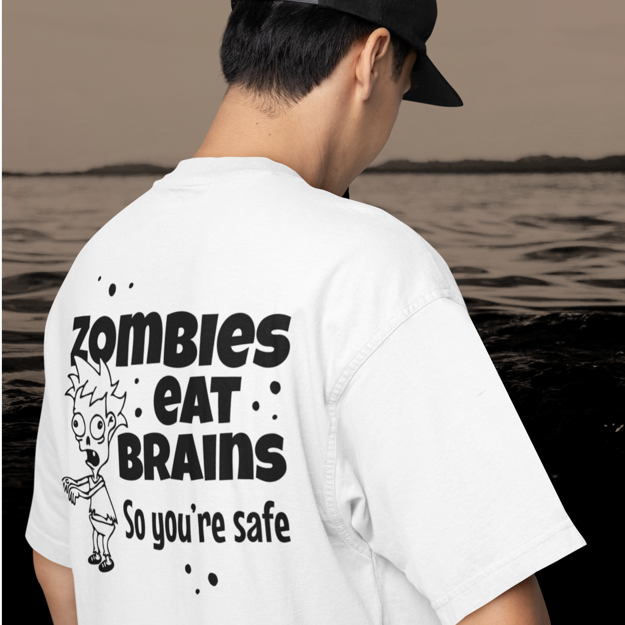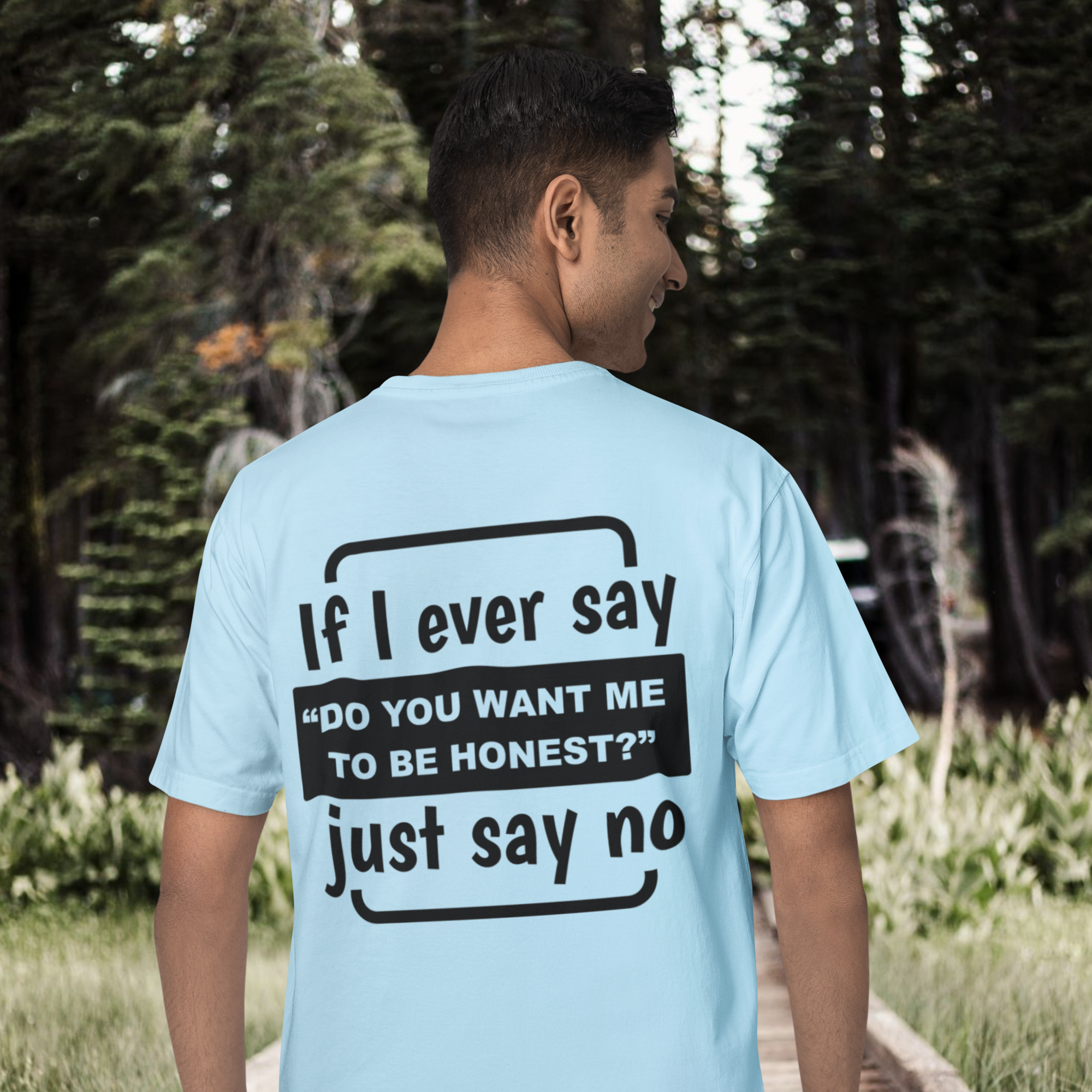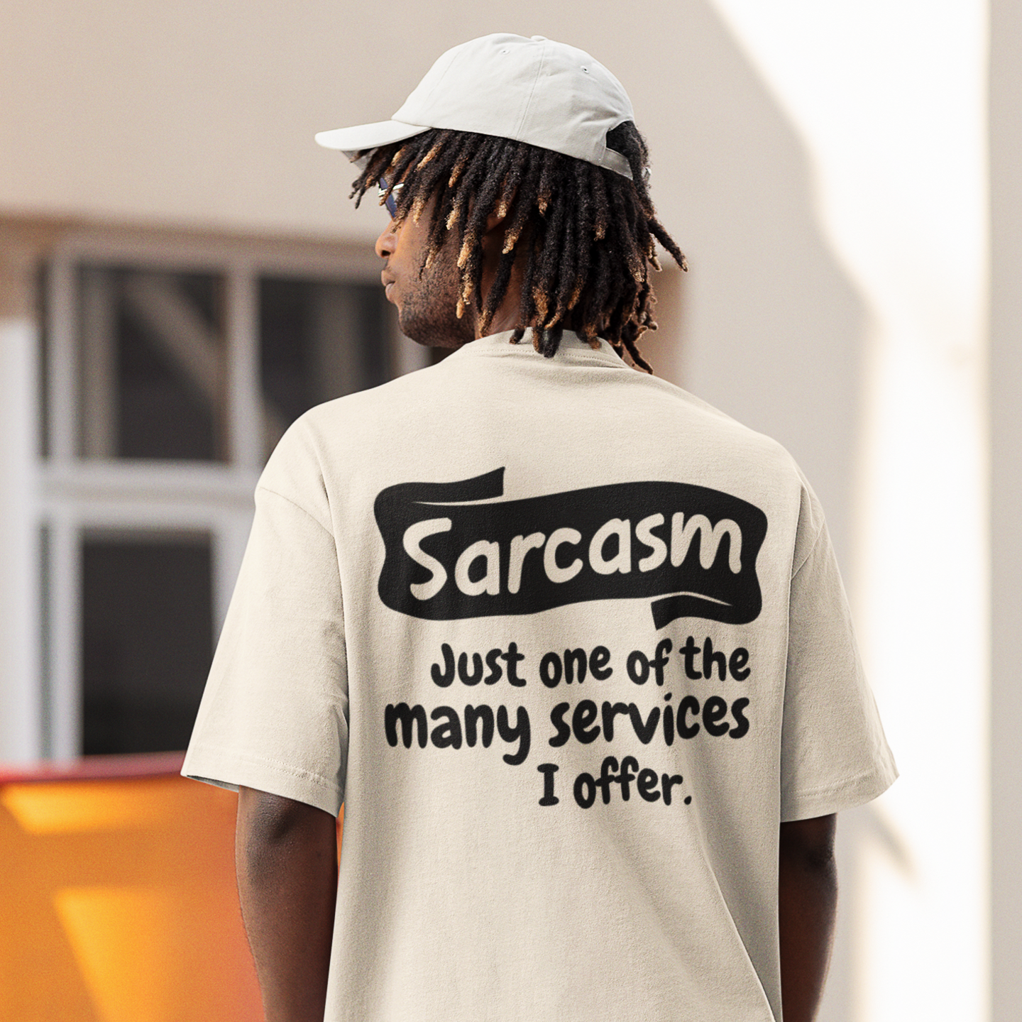 Humor text back printed oversized round neck t shirt for men