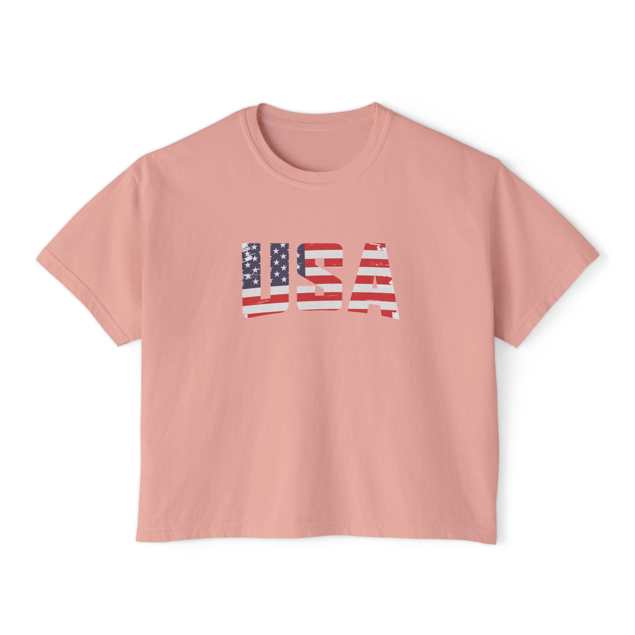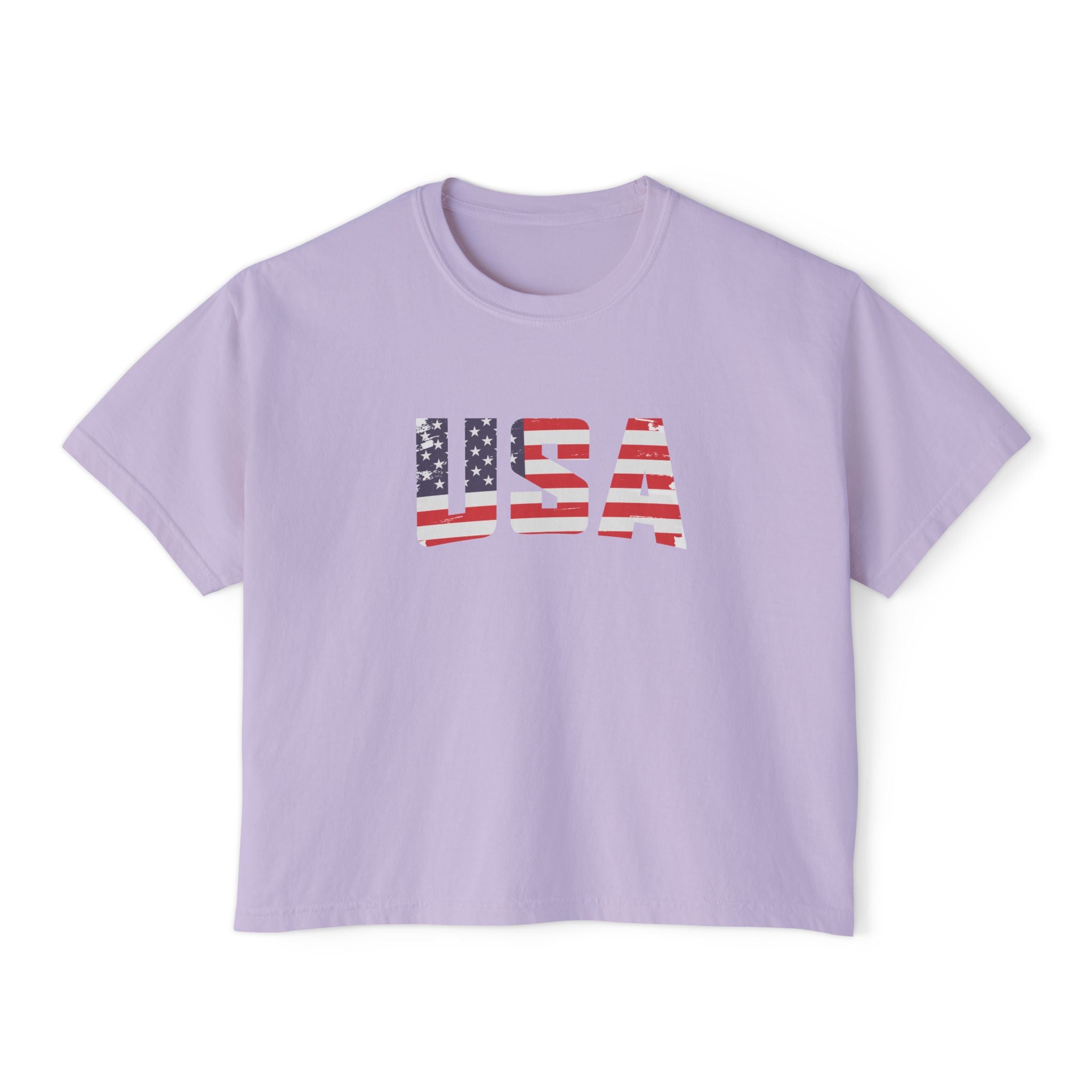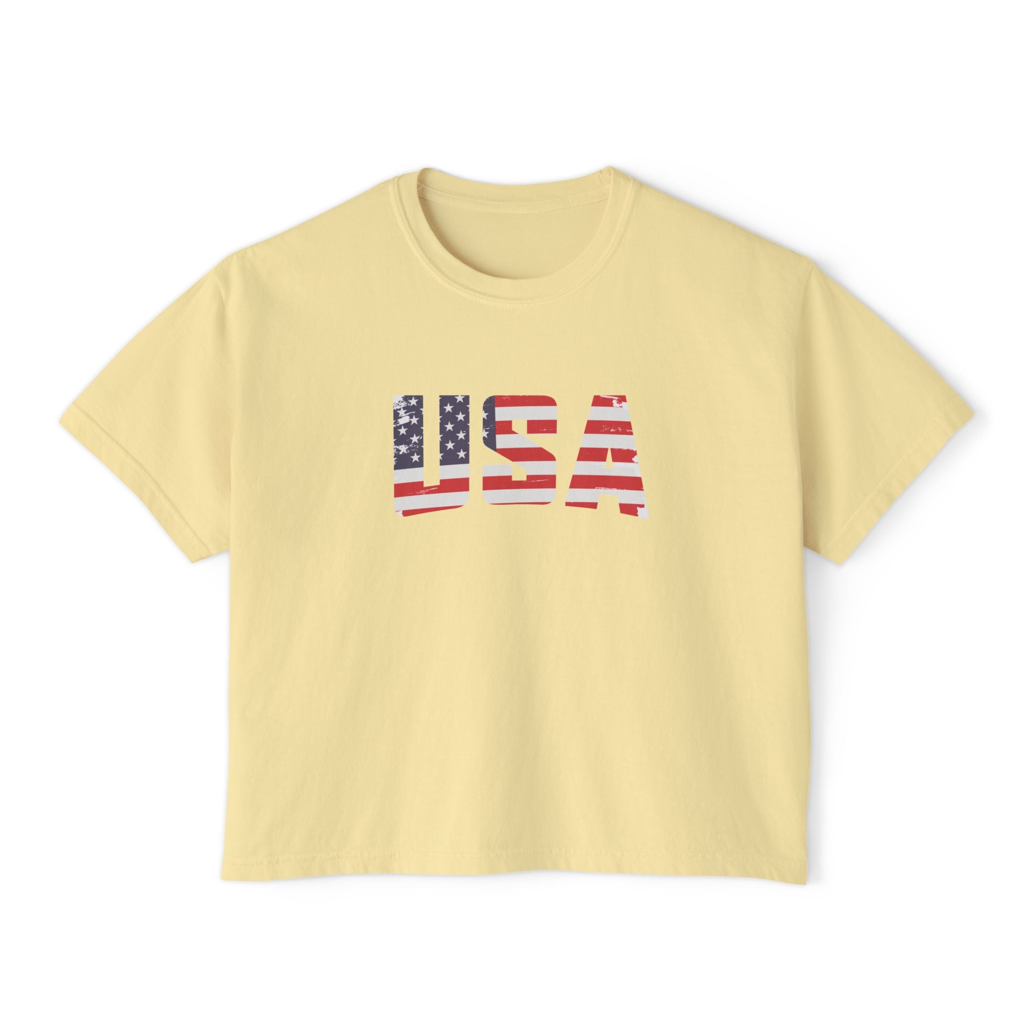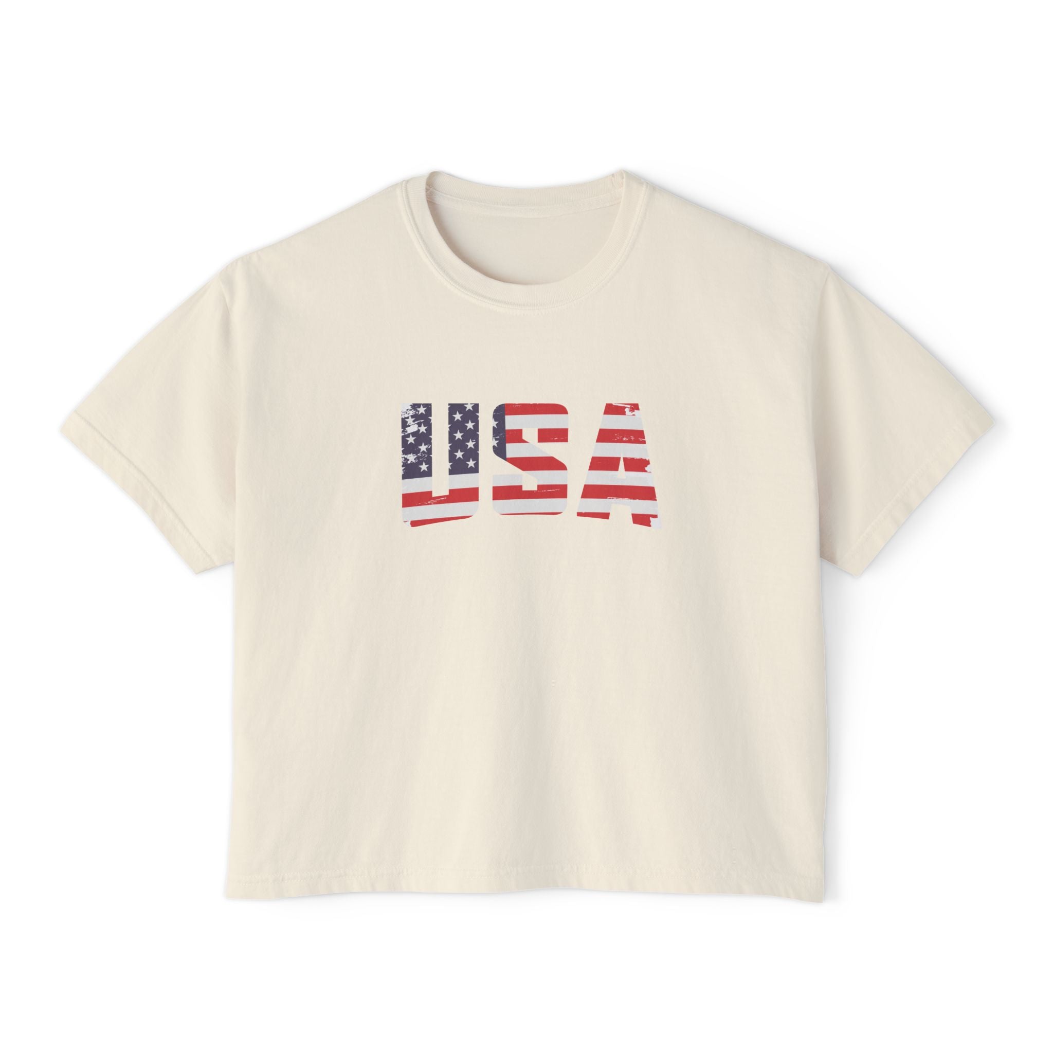 Women USA flag printed boxy fit Cropped Tee