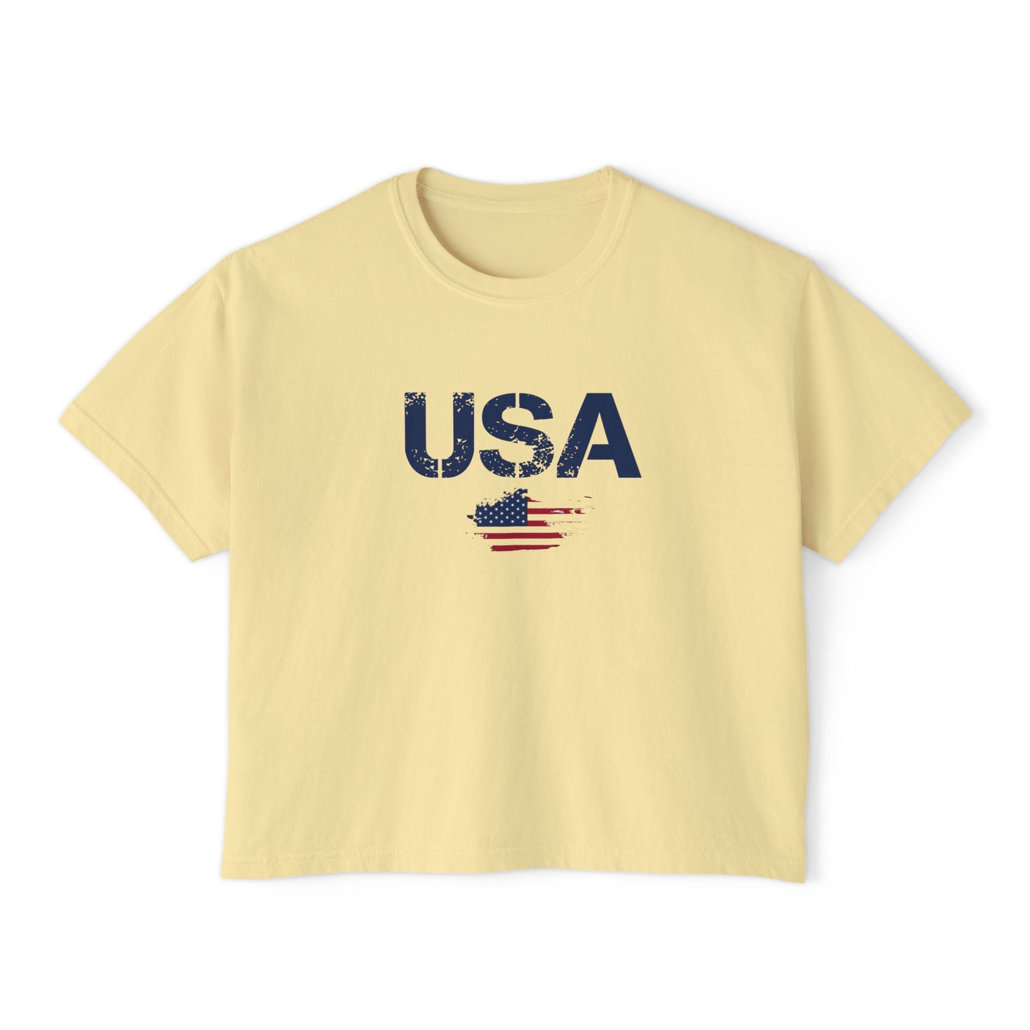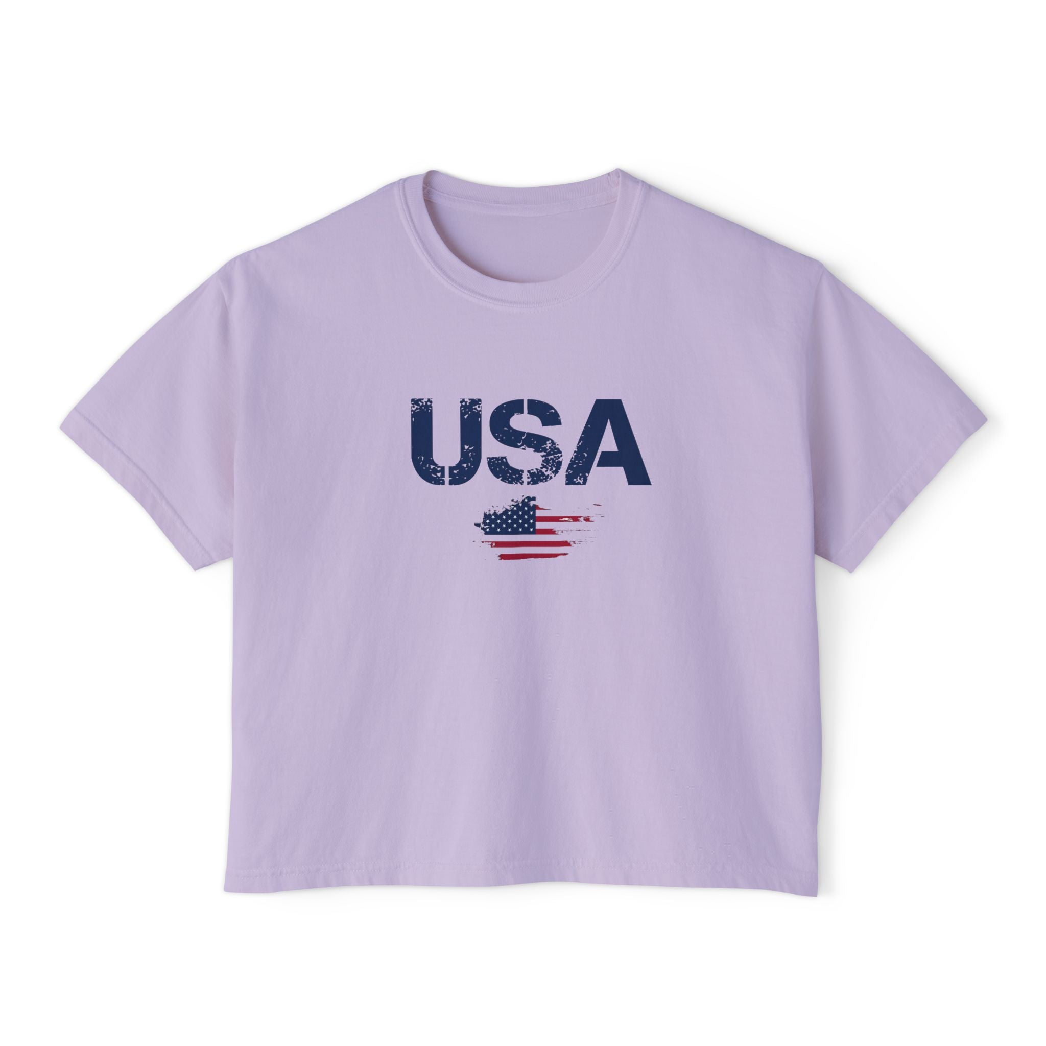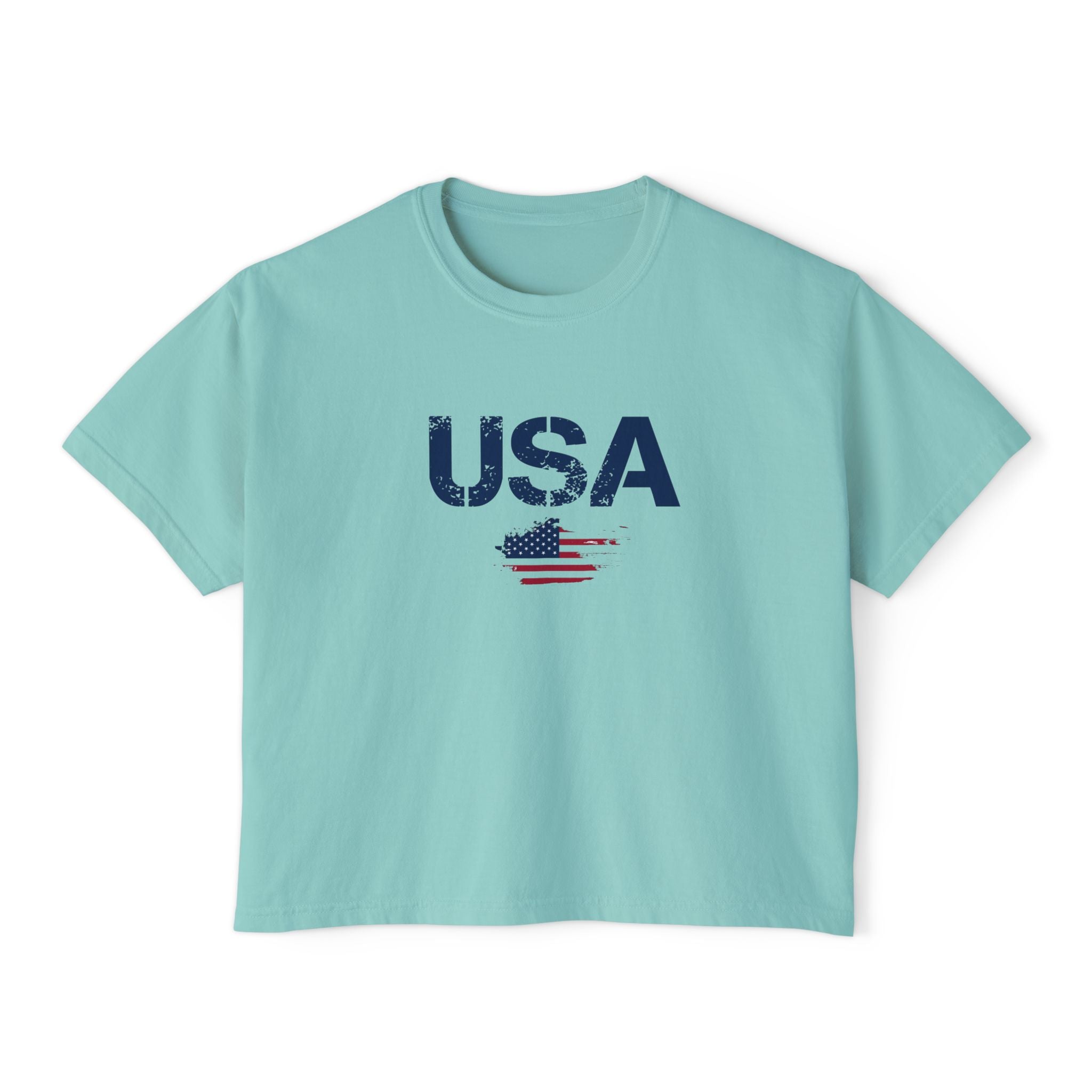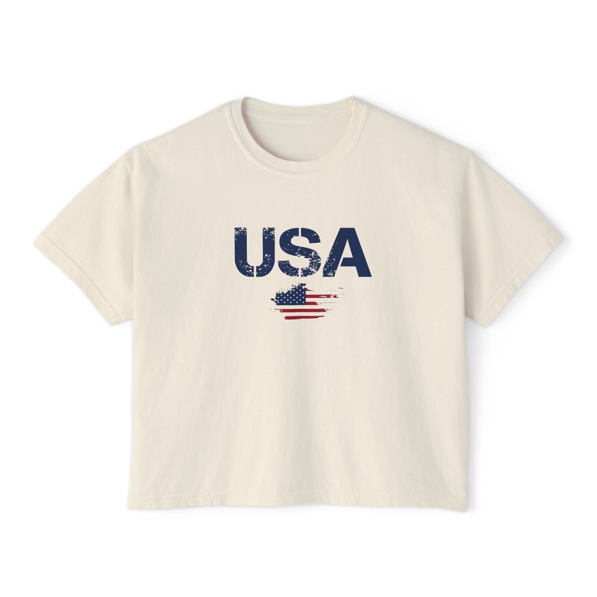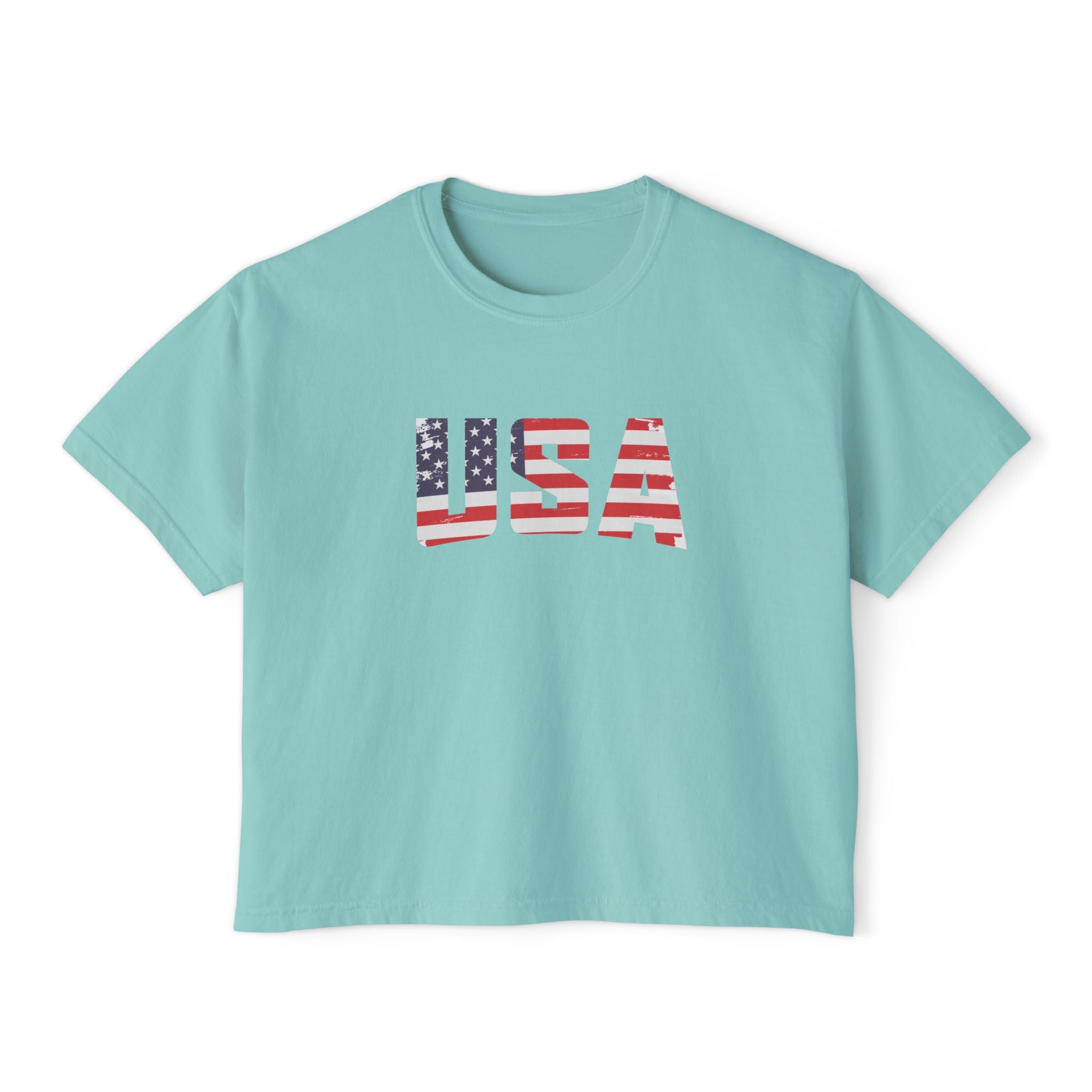 Women USA flag printed boxy fit Cropped Tee