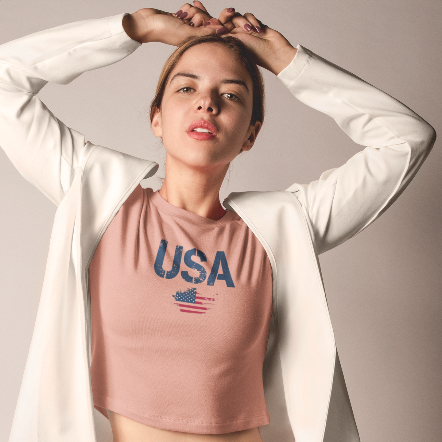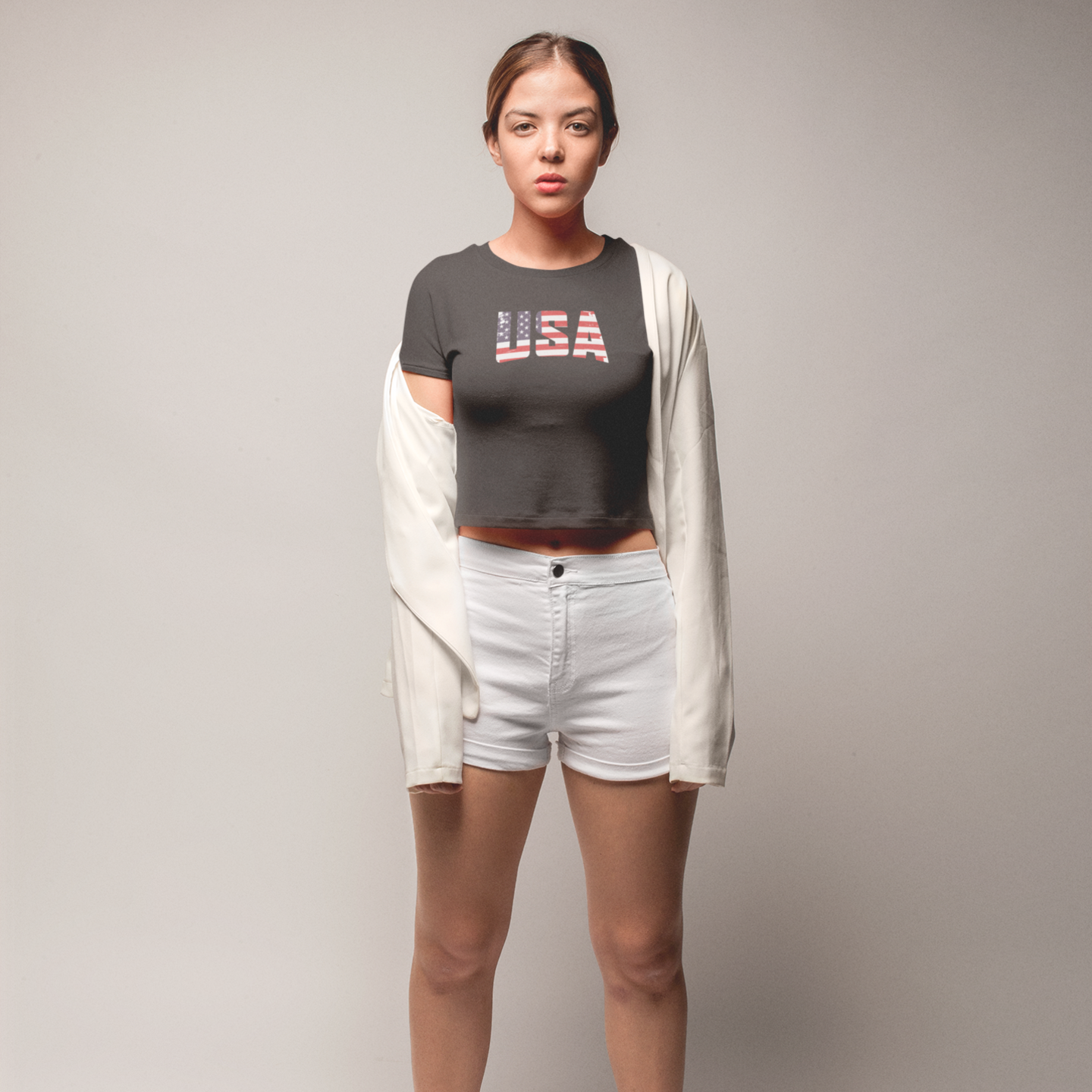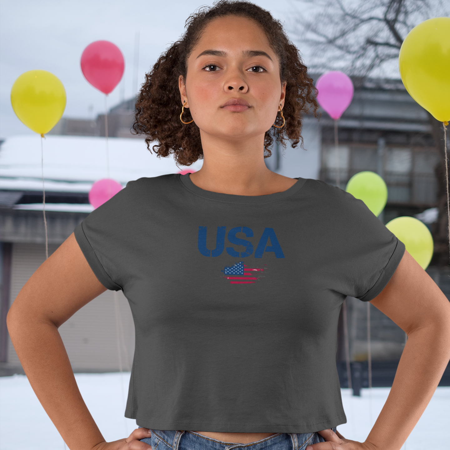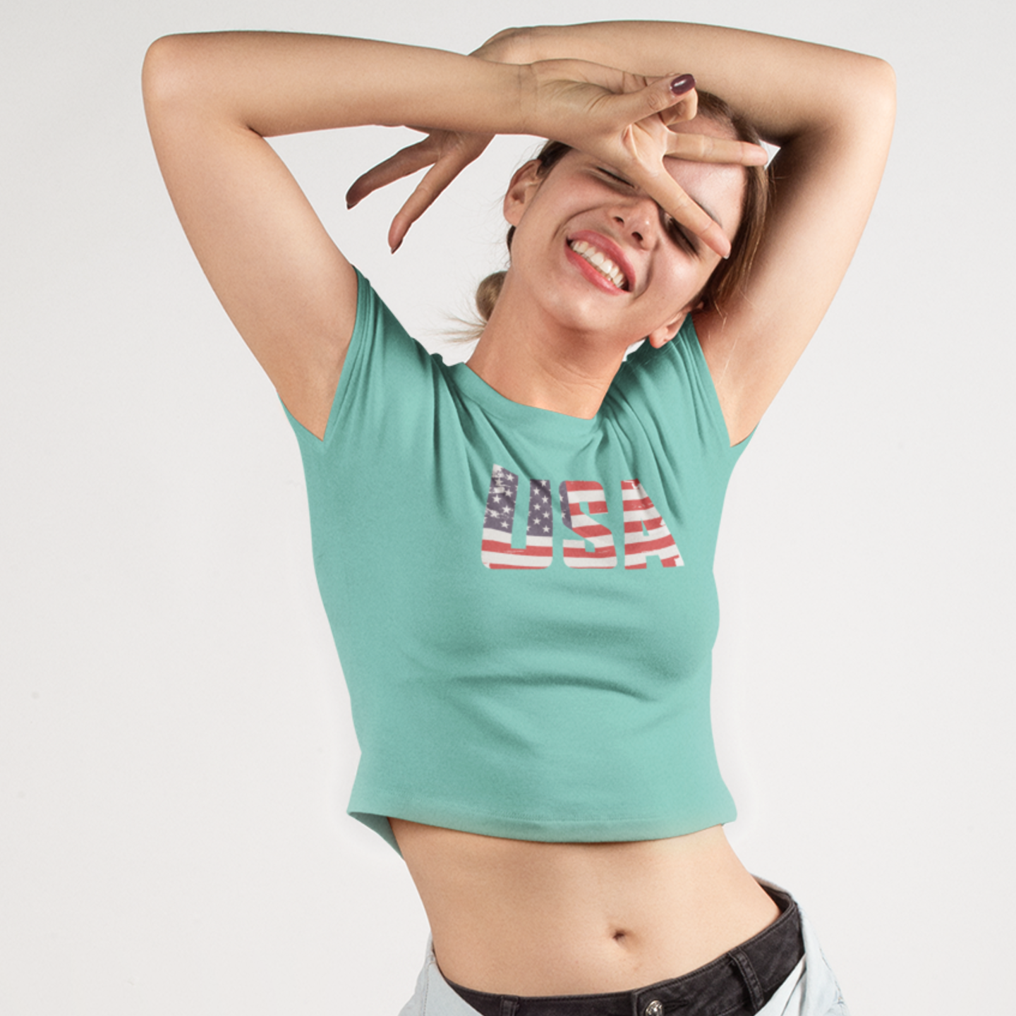 Women USA flag printed boxy fit Cropped Tee