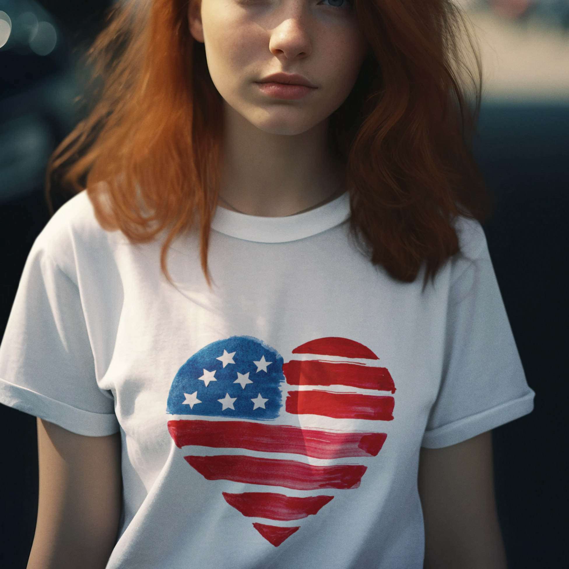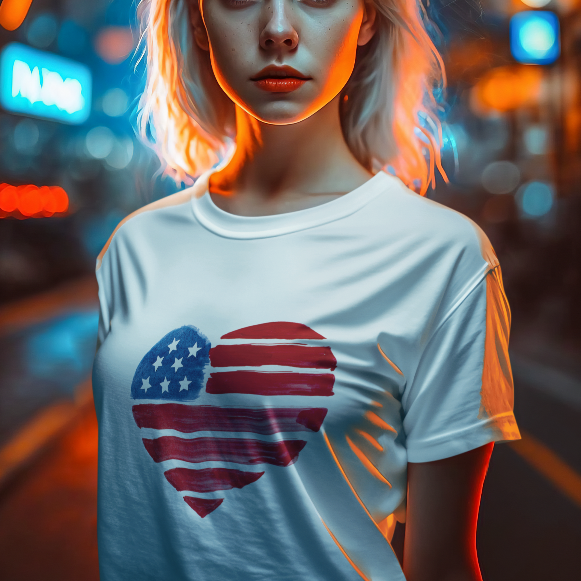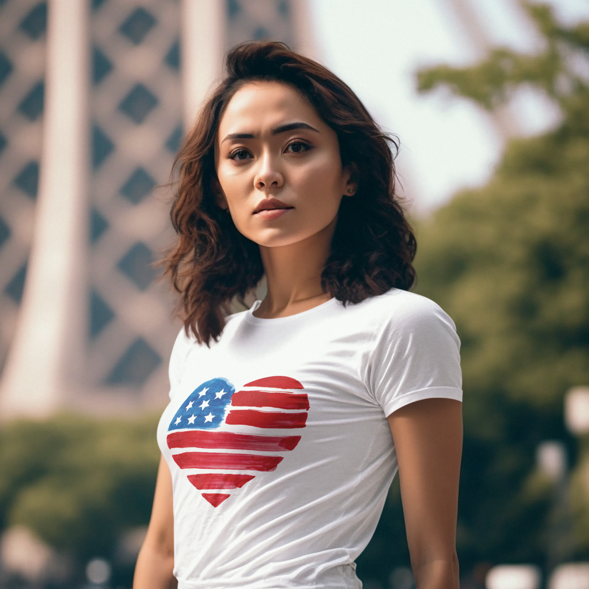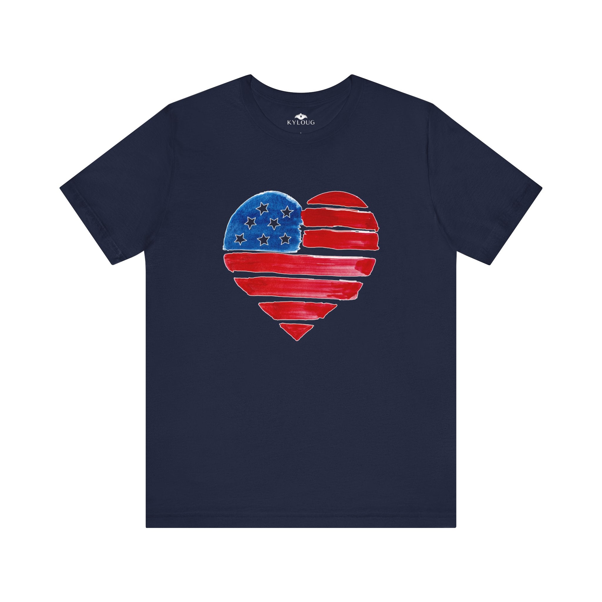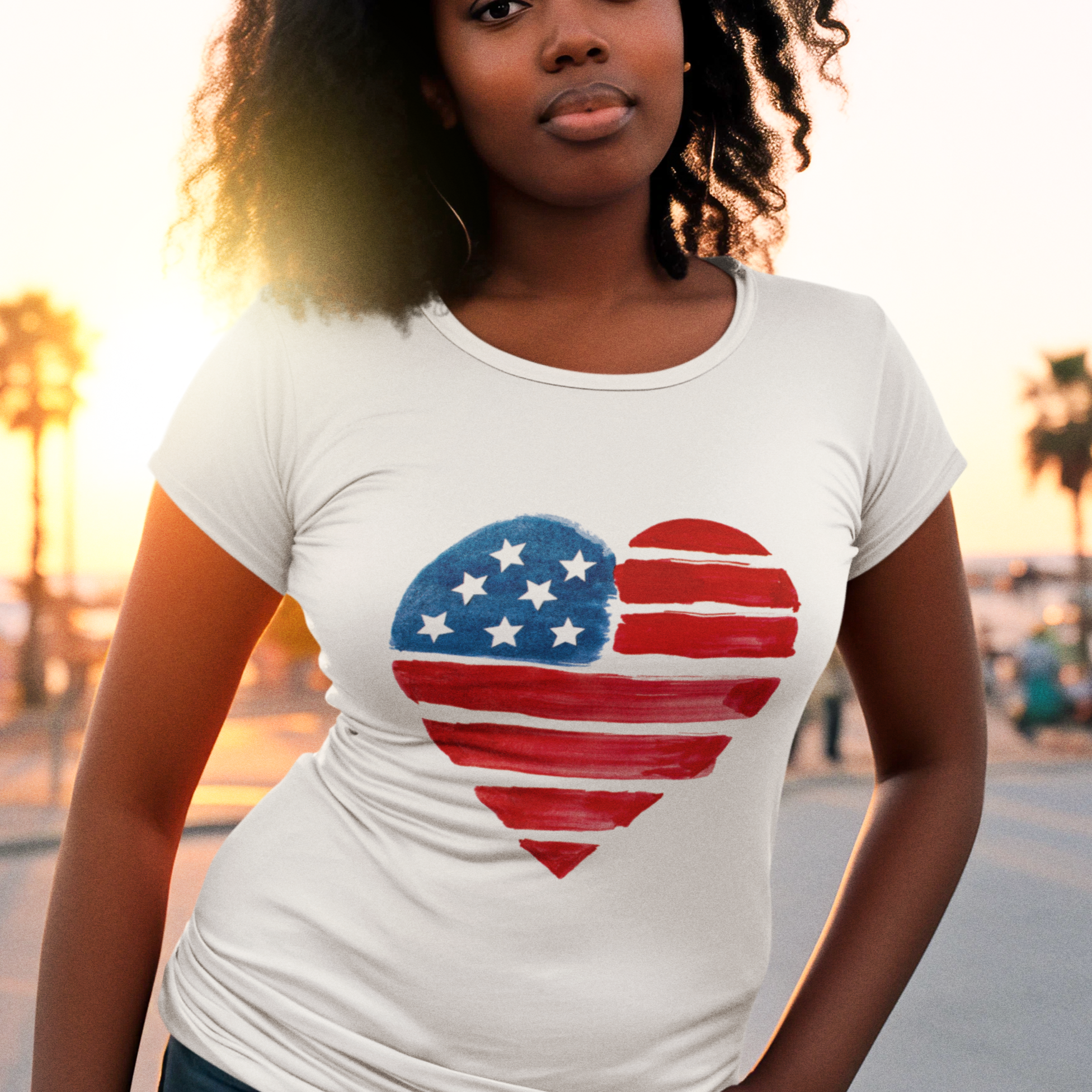 USA Flag Heart Design round neck T-Shirt for women