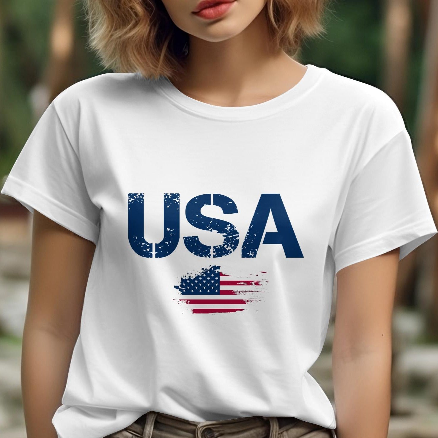 Unisex round neck short sleeve USA Flag Printed T-Shirt