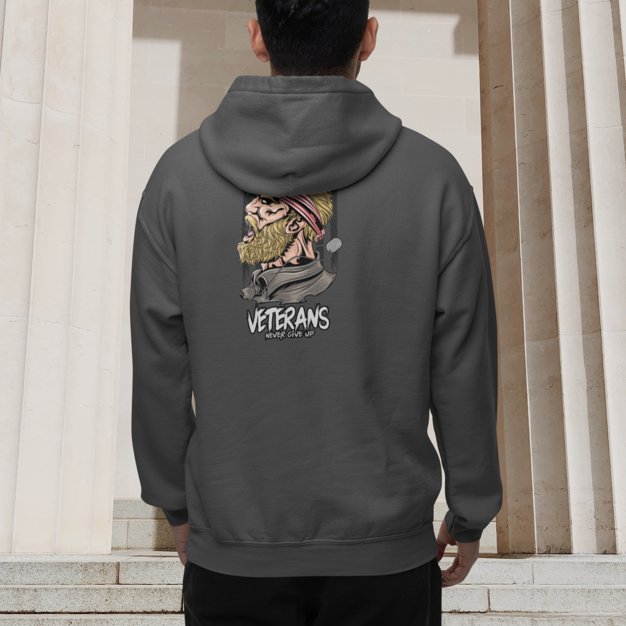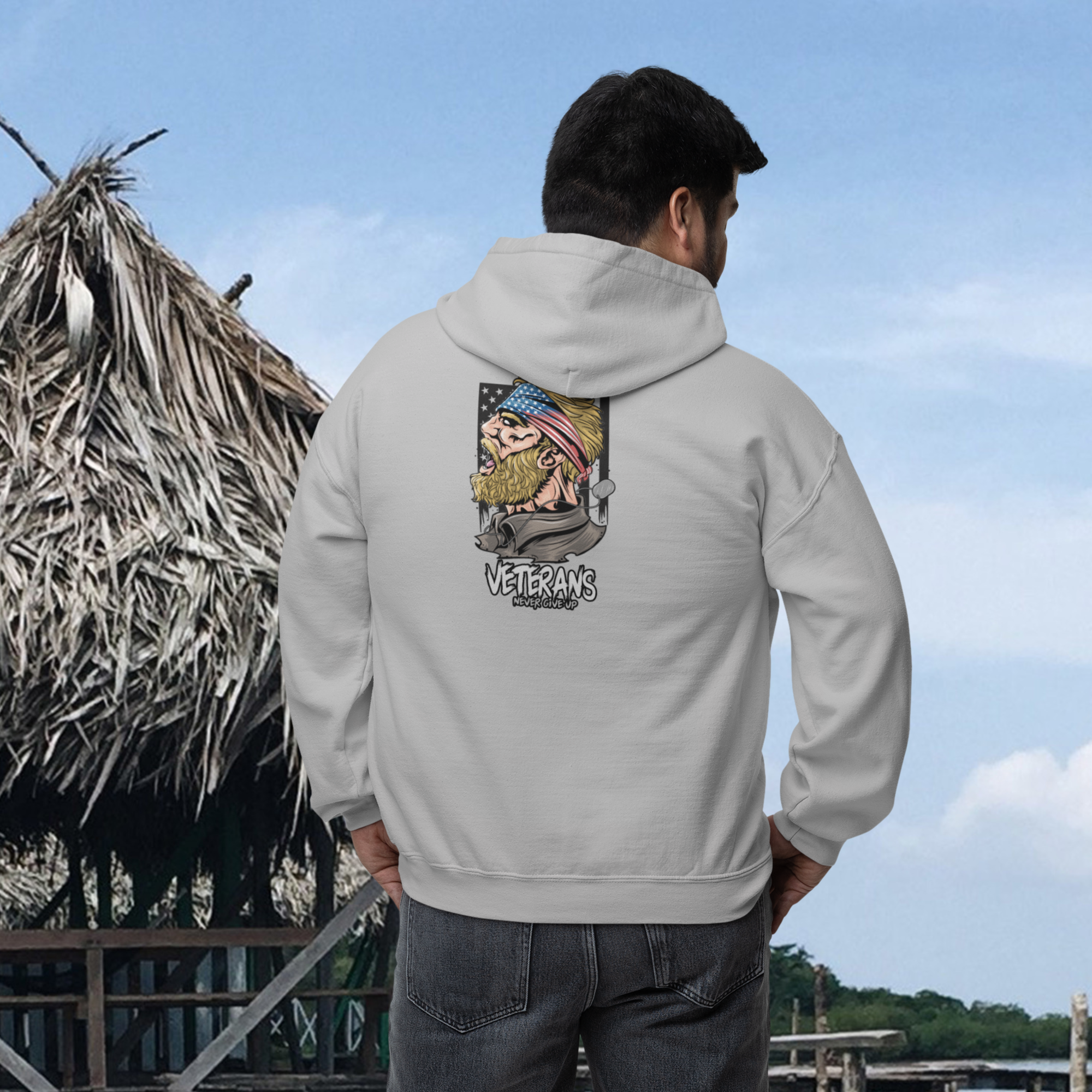 Full Zip classic fit men back print Hoodie for veterans